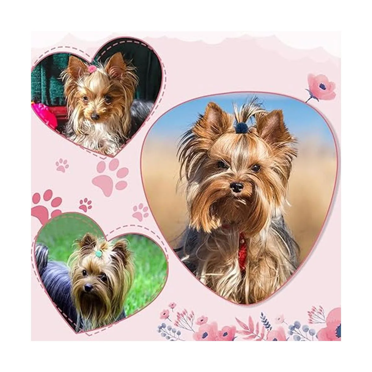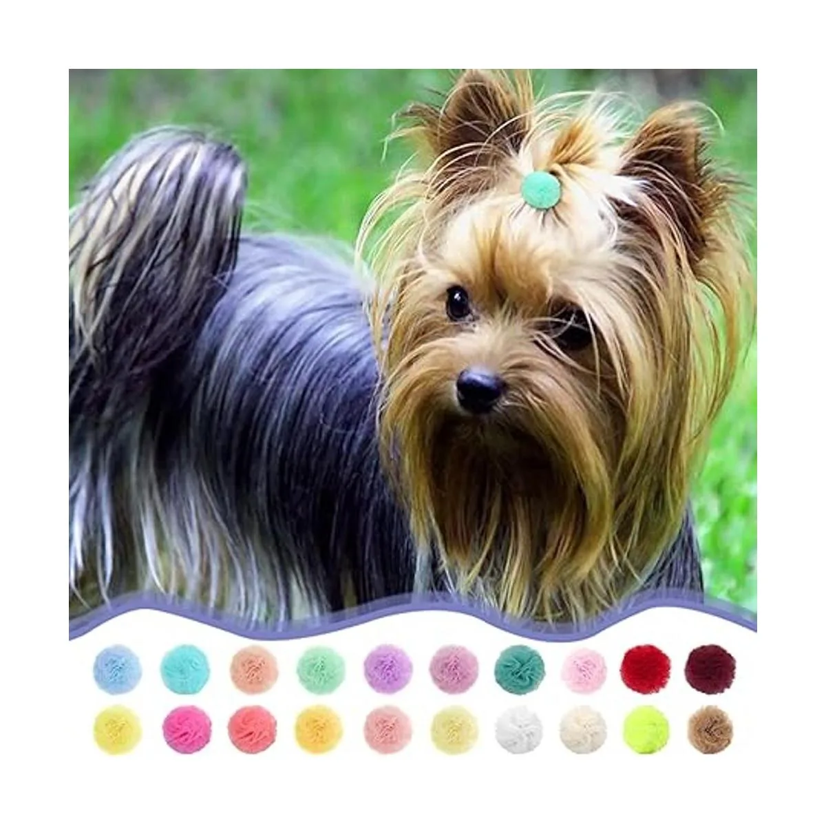 Qearl 48 lazos de bolas de colores para perros pequeños con bandas de goma, accesorios para el pelo para el aseo de mascotas, para cachorros, perros pequeños y gatos en pares