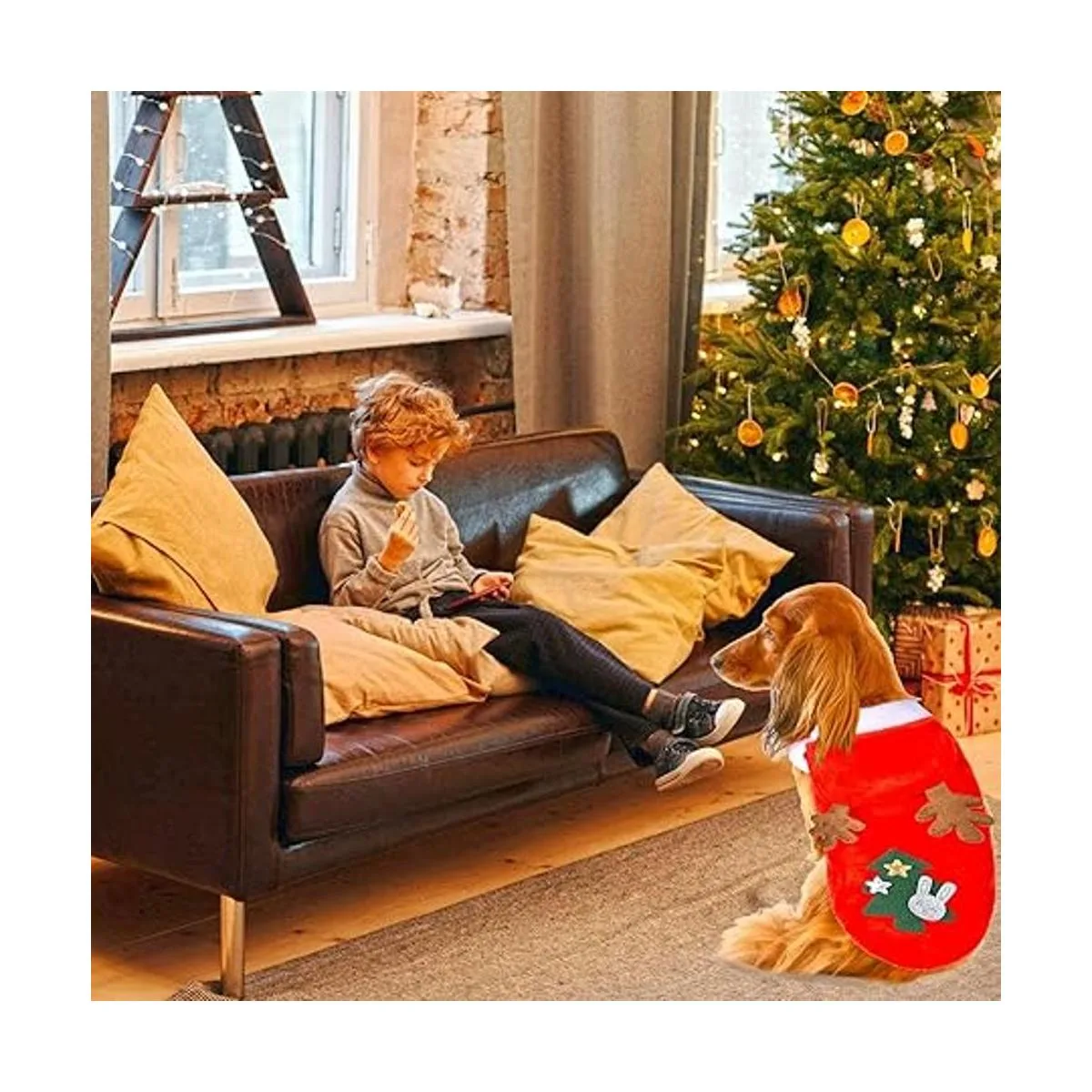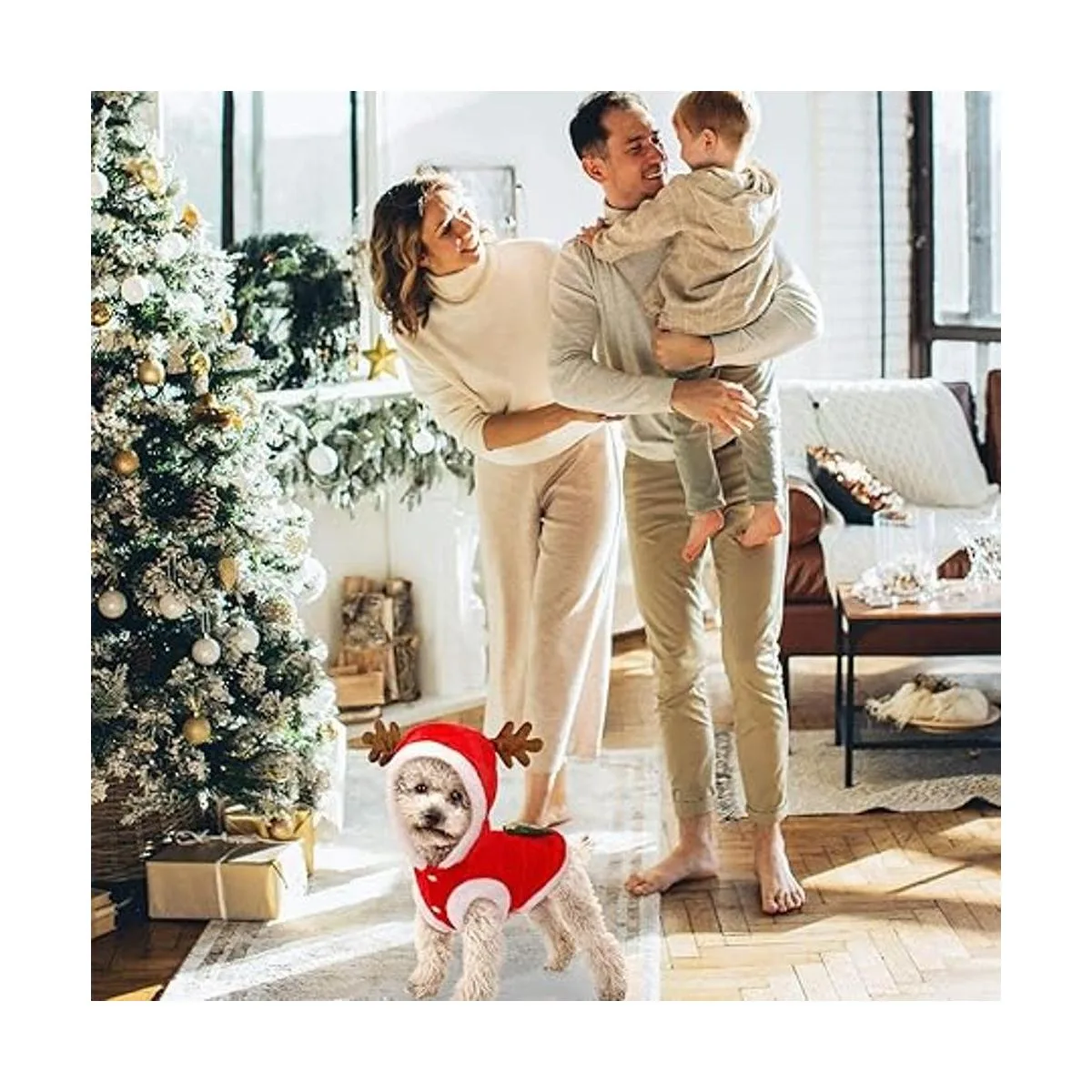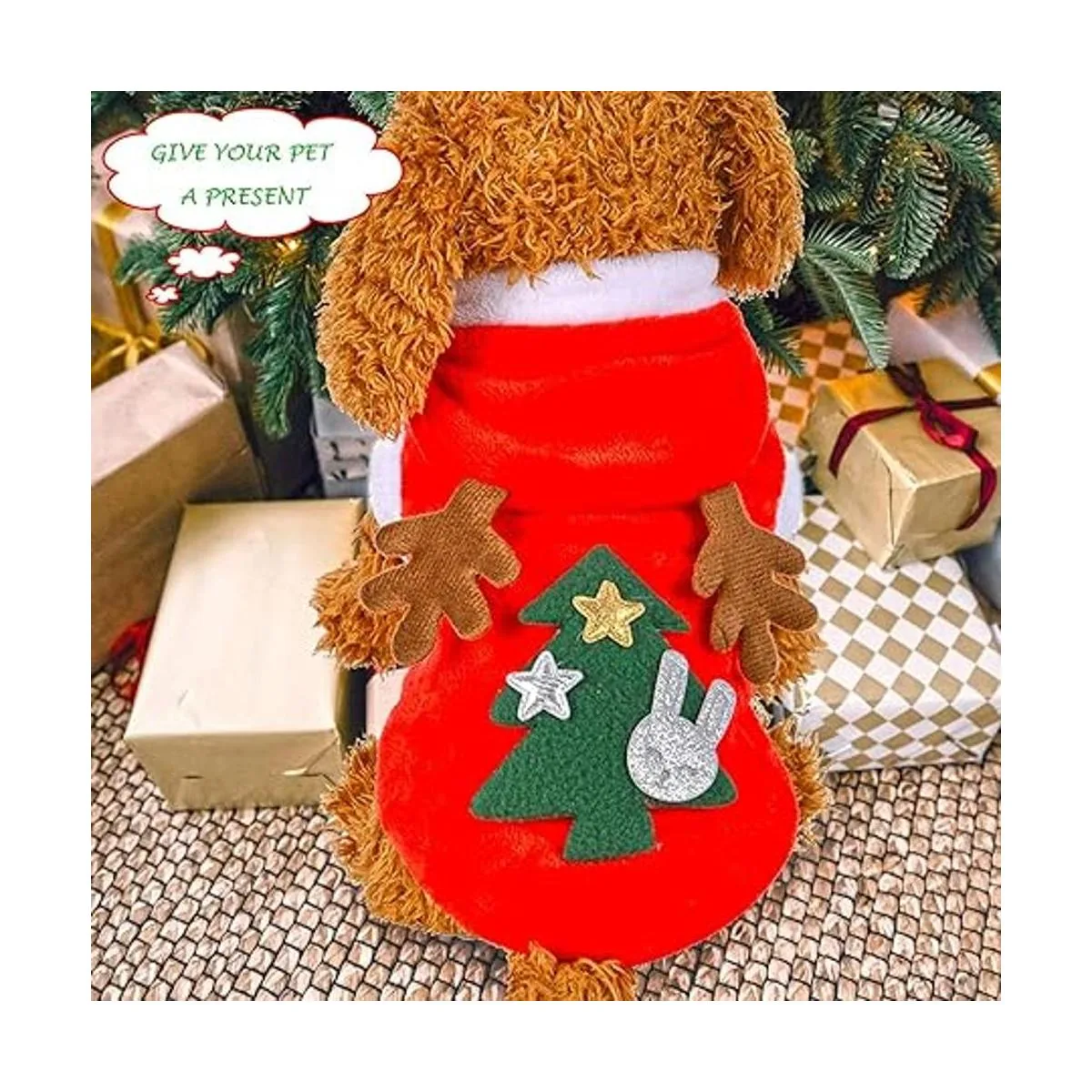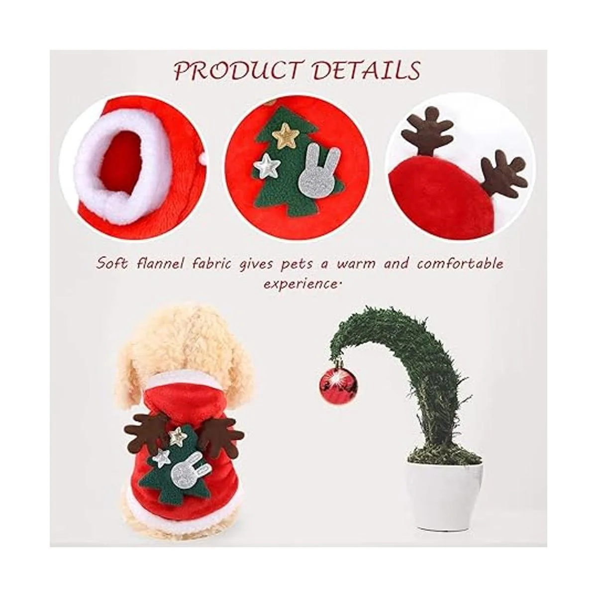QETRABONE Disfraz de alce para perro pequeño, disfraz de Navidad para mascotas, bufanda de alce de Navidad roja, ropa de Navidad