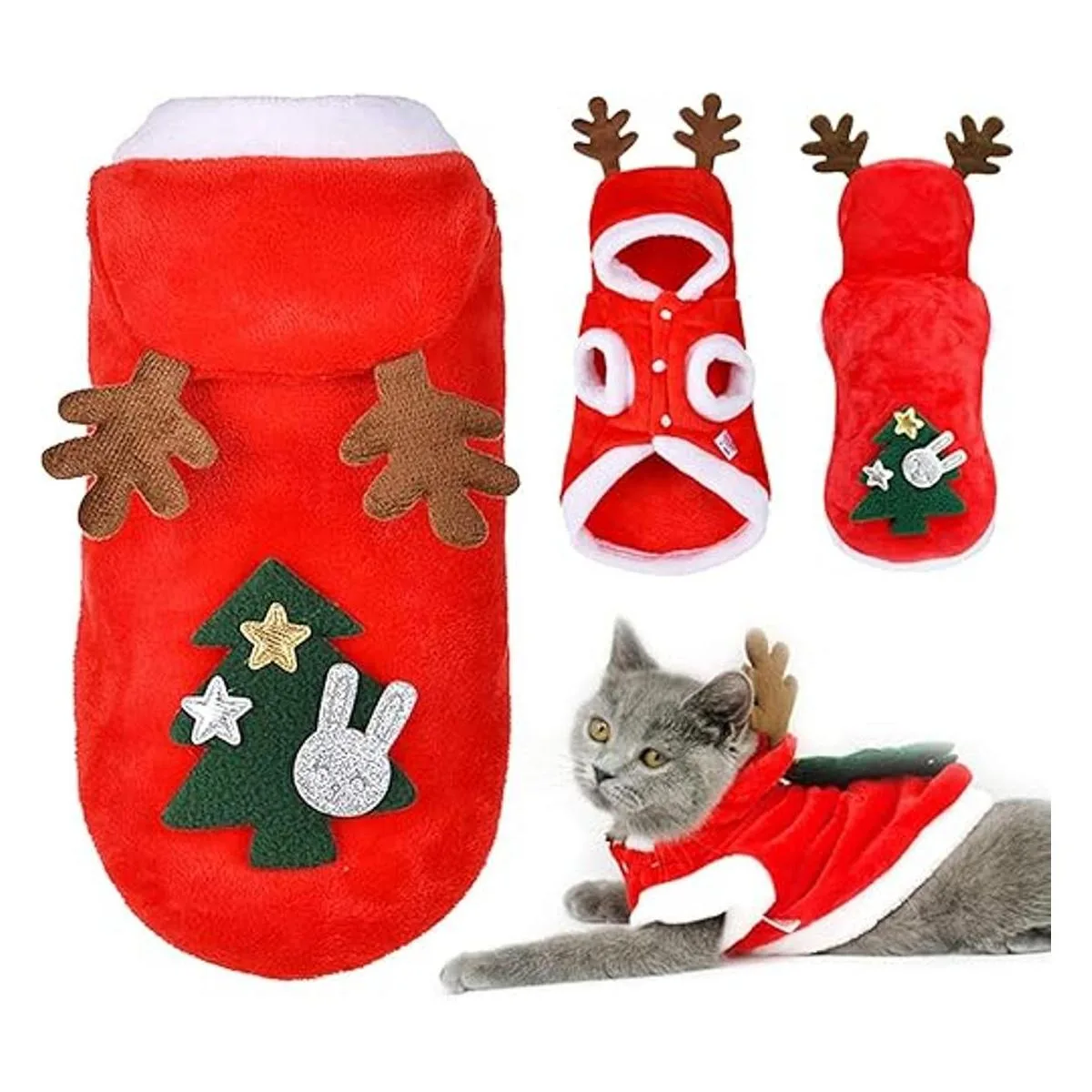 Alta calidad : disfraz de gato para perro hecho de algodón y fibra de poliéster transpirable, suave y agradable al tacto, hacen que el gato/perro se sienta cómodo y cálido todo el día en invierno, manteniendo a tu perro con estilo y manteniéndote caliente también. Fácil limpieza: lavable a máquina o a mano, fácil de limpiar. Es fácil de limpiar, poner o quitar, y cómodo para tu mascota.