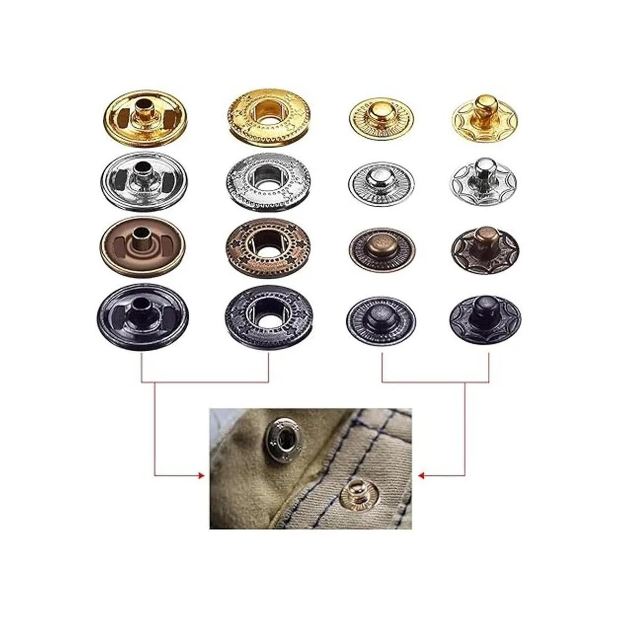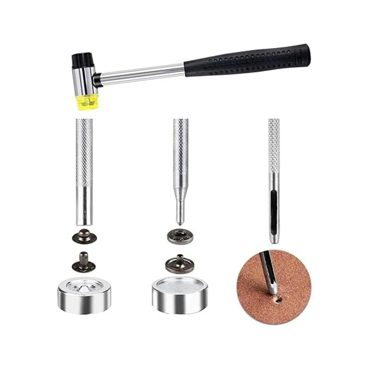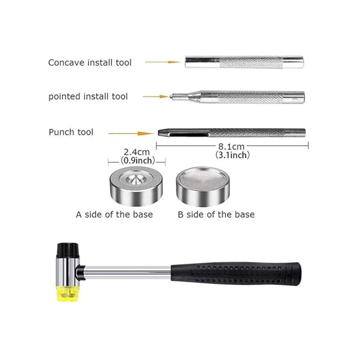 Duradero y duradero: todos estos cierres a presión están hechos de aleación de zinc de cobre con chapado sin níquel, permanecen como nuevos incluso después de un uso prolongado. Se puede utilizar con confianza, y hay un martillo para ayudarte en tu trabajo