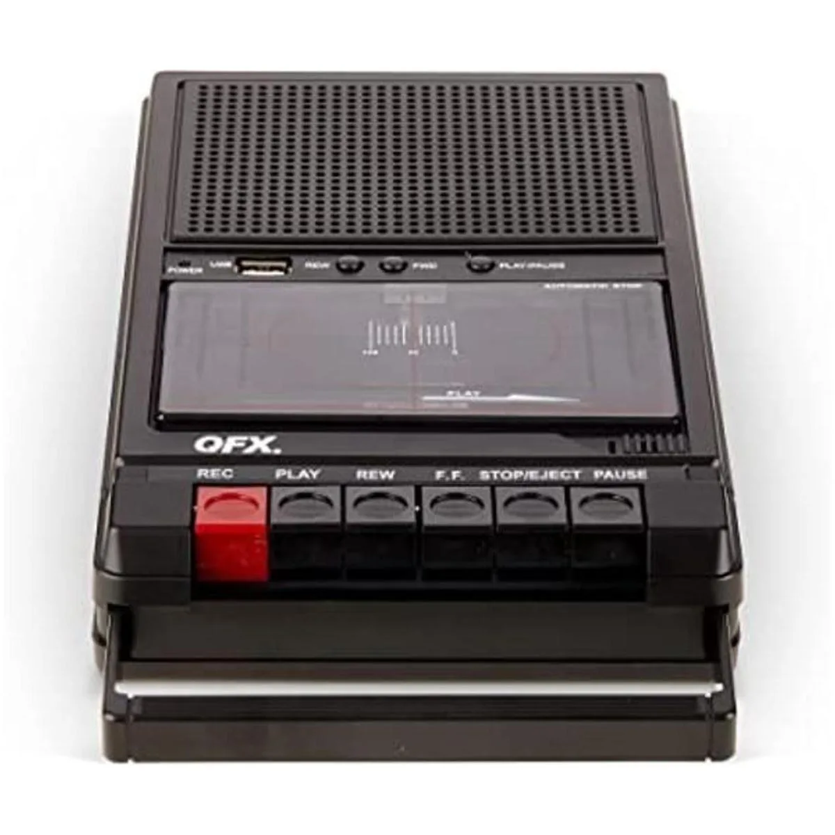 QFX RETRO39 Grabadora de cinta para zapatos Cubierta de cinta, USB 2.0, micrófono integrado, altavoz de 3.5 pulgadas, cubierta de cinta de casete analógica portátil, color negro