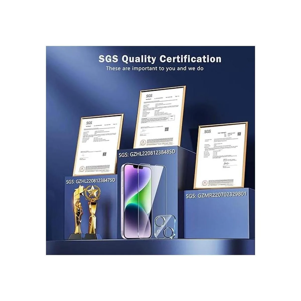 Certificación RoHS ambiental y prueba de caídas SGS: vidrio templado QHOHQ y cubierta de cámara con dureza 9H probada, el protector de pantalla certificado SGS puede soportar una caída de 6 pies sin dañar la pantalla de tu teléfono, y alcanzar el 99.99 de prueba de transmisión de luz certificado SGS NO. : GZMR220702329801; al mismo tiempo, los productos han pasado el informe de prueba de protección ambiental RoHS certificado n. : GZHL2208123848SD y GZHL2208123847SD, cumplen con las normas ambientales internacionales.