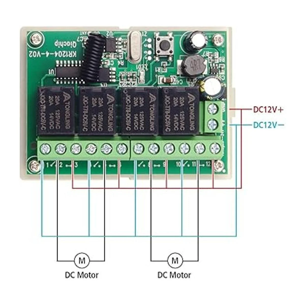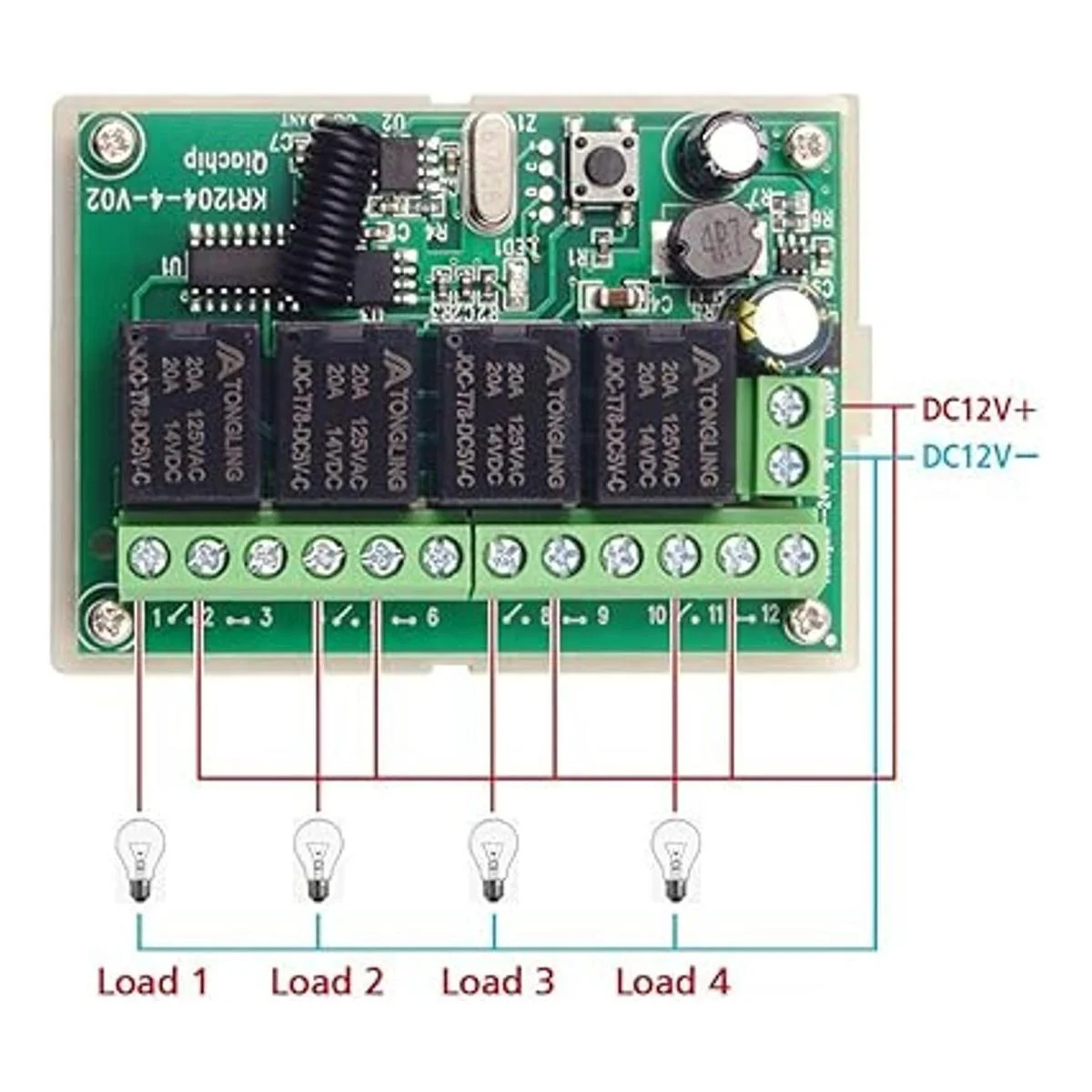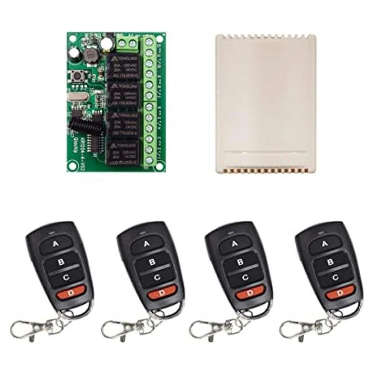 QIACHIP Interruptor RF inalámbrico de 433 Mhz de largo alcance CC 12 V 4 canales interruptor de control remoto inalámbrico, módulo receptor de relé, interruptor de palanca de transmisor, relé RF 4 transmisores y 1 receptor