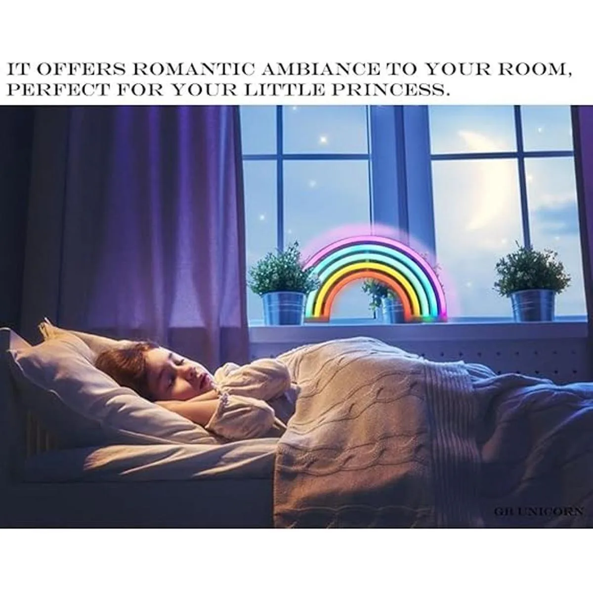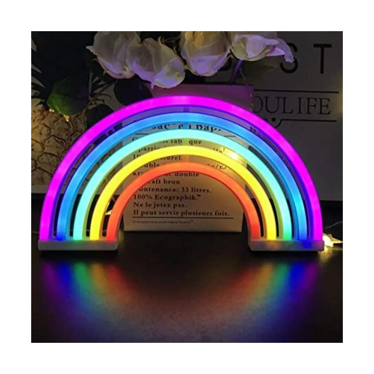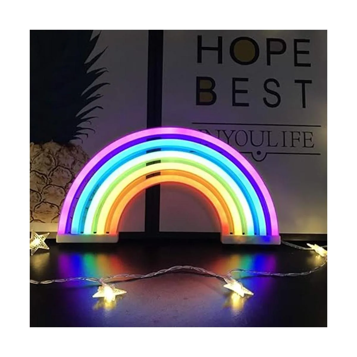 Luz nocturna novedosa: bonita luz nocturna de neón arcoíris, es una solución maravillosa para la decoración de la habitación de tus pequeños. Hermosa y moderna lámpara LED decorativa. Añade vigor a esa mesa auxiliar de cama con esta decoración de luz LED. Ofrece un ambiente de luz cálida a tu lugar