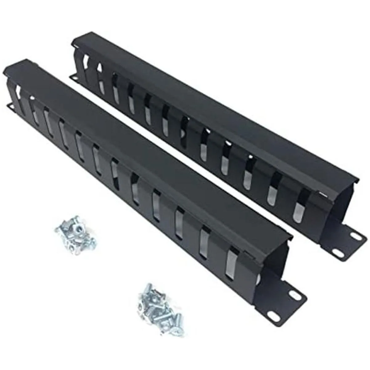 QiaoYoubang Paquete de 2 unidades Organizador de cables horizontal de 19 pulgadas de metal con 12 ranuras grandes 1UCM12S2PC