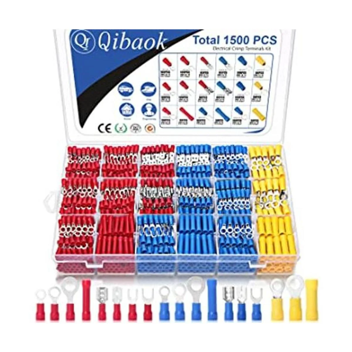 Qibaok 1500 conectores de cable aislados, terminales de cable eléctrico, conector de crimpado, anillo, tenedor, pala de espada, kit de conector de tope