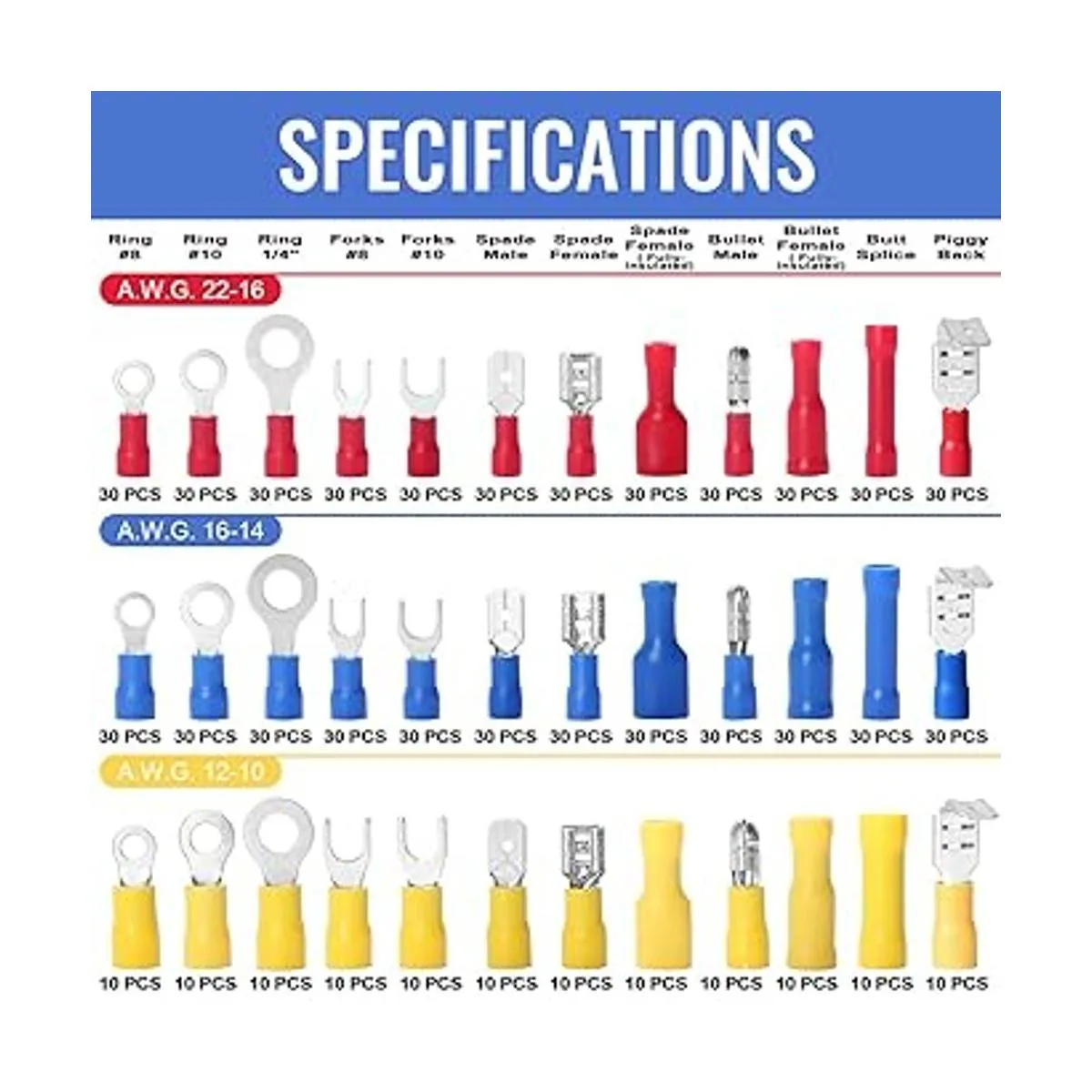 Varias aplicaciones: un práctico surtido de conectores de terminales viene con todo lo que necesitas para hacer reparaciones eléctricas rápidas sin soldadura en casa, garaje, taller o exterior.