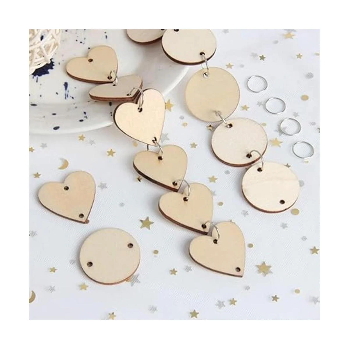 Qililandiy 200 unidades en total, adornos de madera, etiquetas de corazón con agujeros y anillos de 0.472 in para tarjetas de cumpleaños, San Valentín, tareas y manualidades