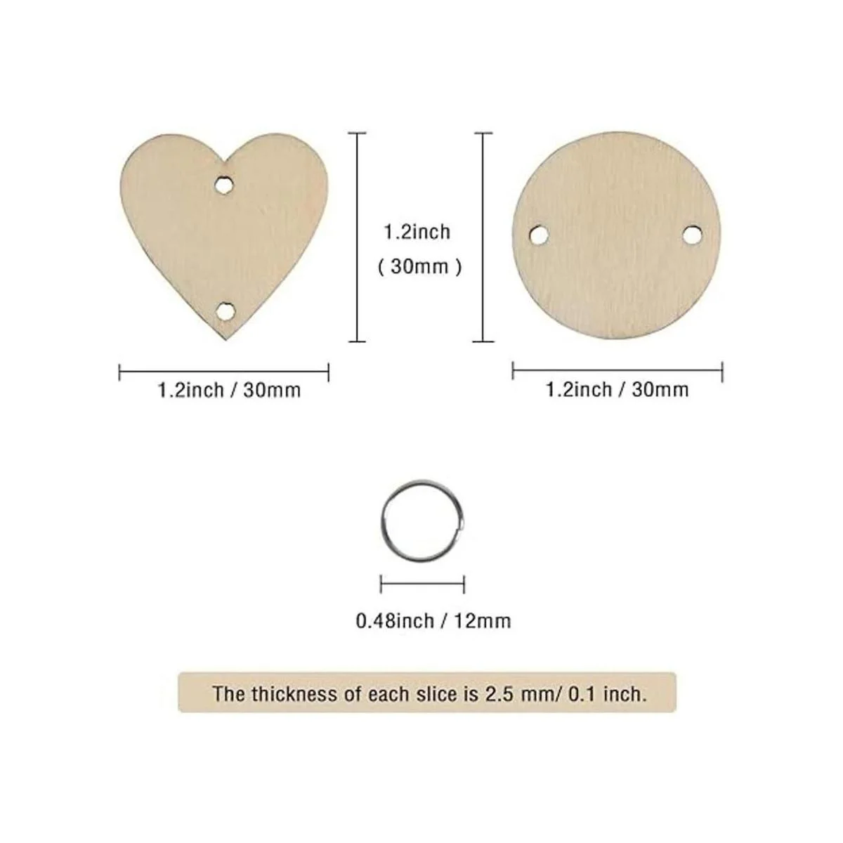 El paquete incluye: 200 piezas en total, incluye 50 círculos de madera y 50 etiquetas de corazón de madera, 100 conectores de llavero, 2 formas pueden satisfacer tus diversas necesidades y los llaveros pueden ayudarte a hacer tus manualidades fácilmente
