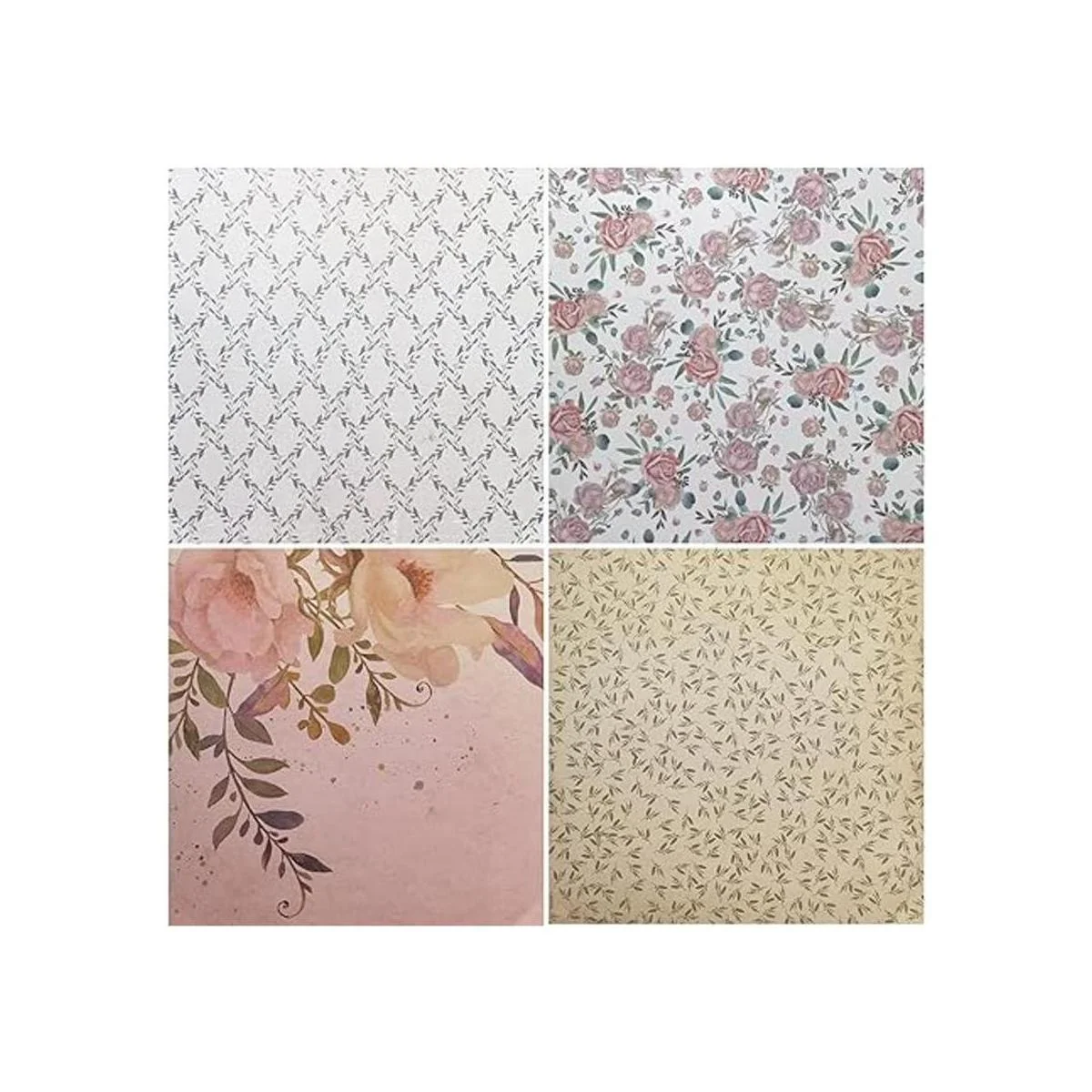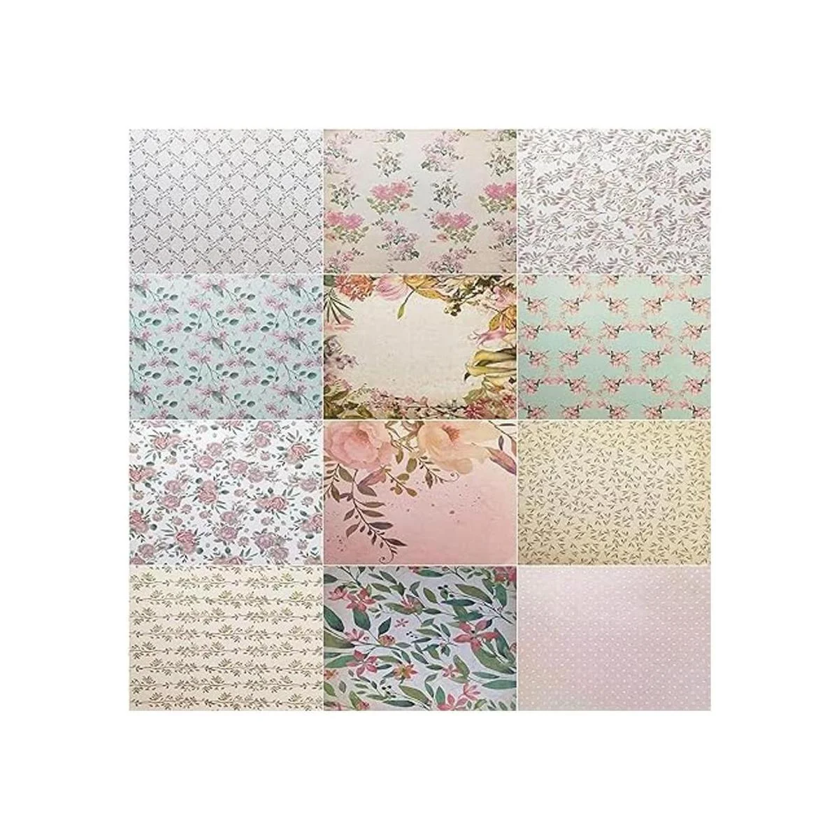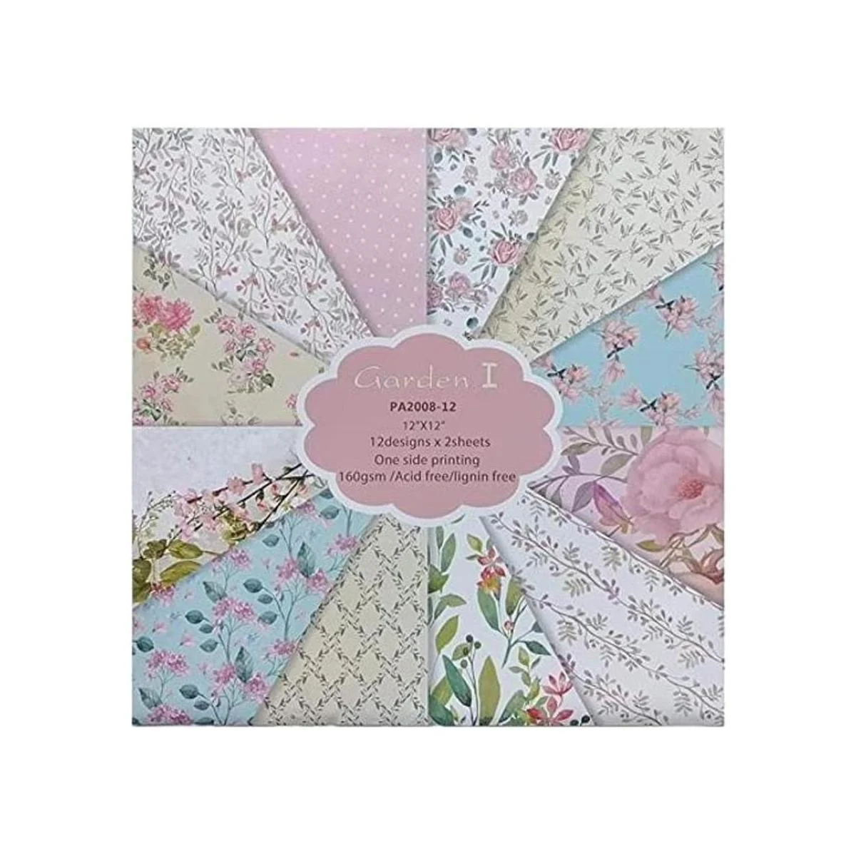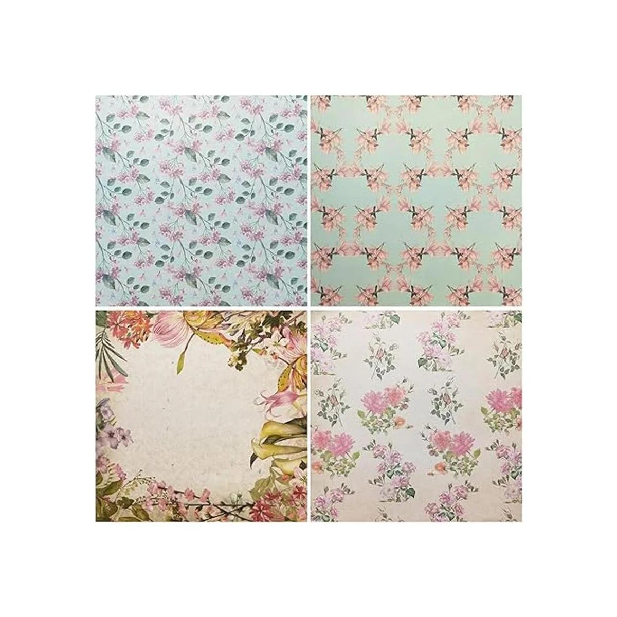 Qililandiy 24 hojas de papel de cartulina de 12.0 x 12.0 in, bonito paquete de papel para manualidades y álbumes de fotos con temática floral