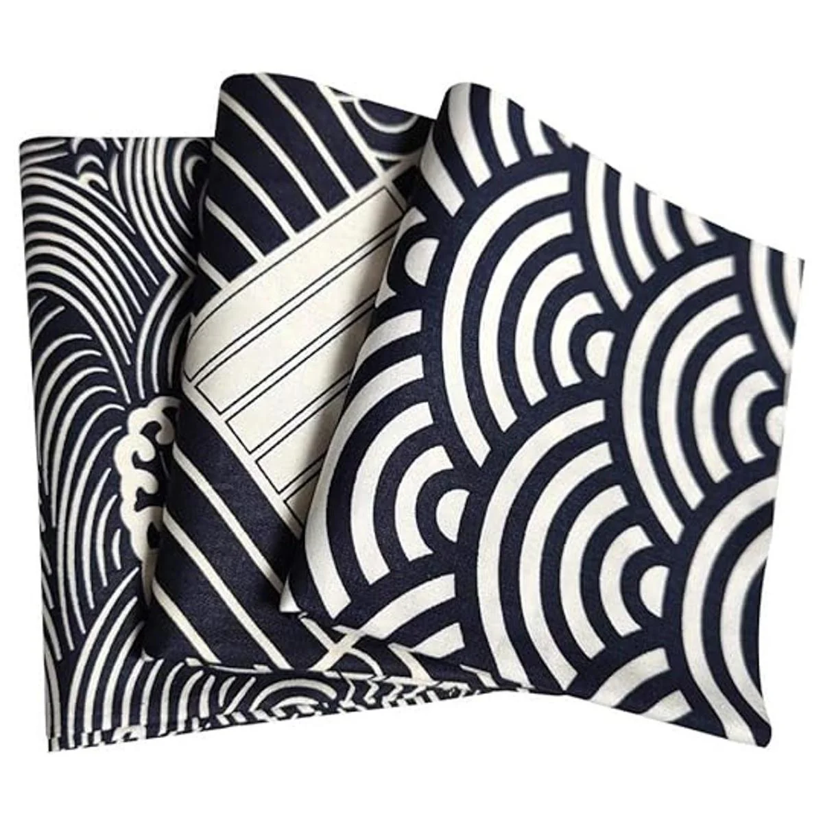 Qililandiy 3 paquetes de tela de algodón de onda de mar de 18.0 x 22.0 in para coser acolchados, manualidades y proyectos