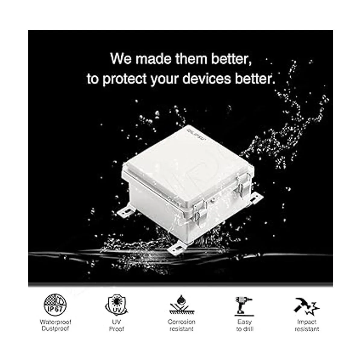 Grado IP67 Resistente al agua y a la intemperie, bloquea eficazmente salpicaduras de agua, lluvia, polvo, nieve, aceite, rayos ultravioleta, etc., se puede utilizar ampliamente tanto para aplicaciones en interiores como exteriores.