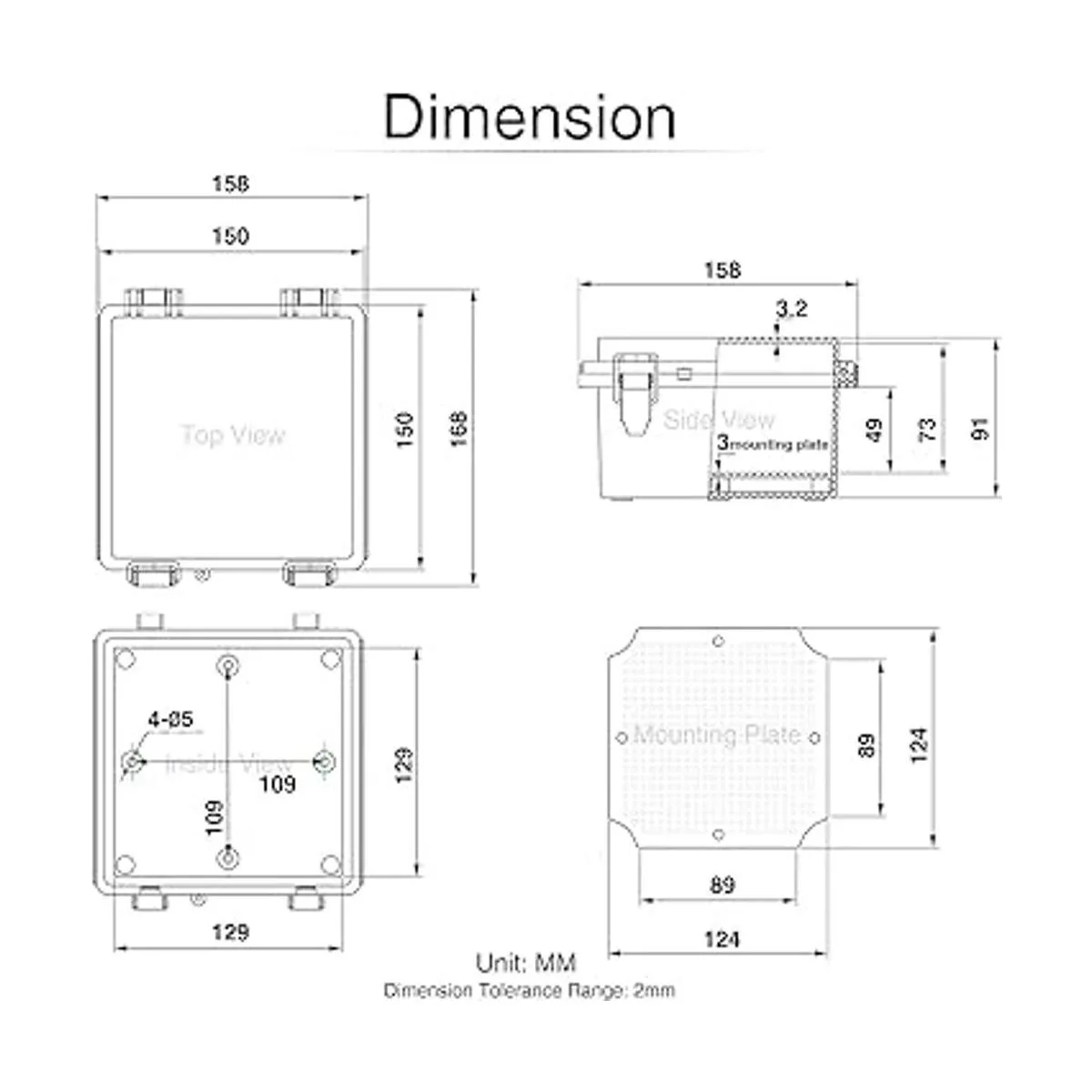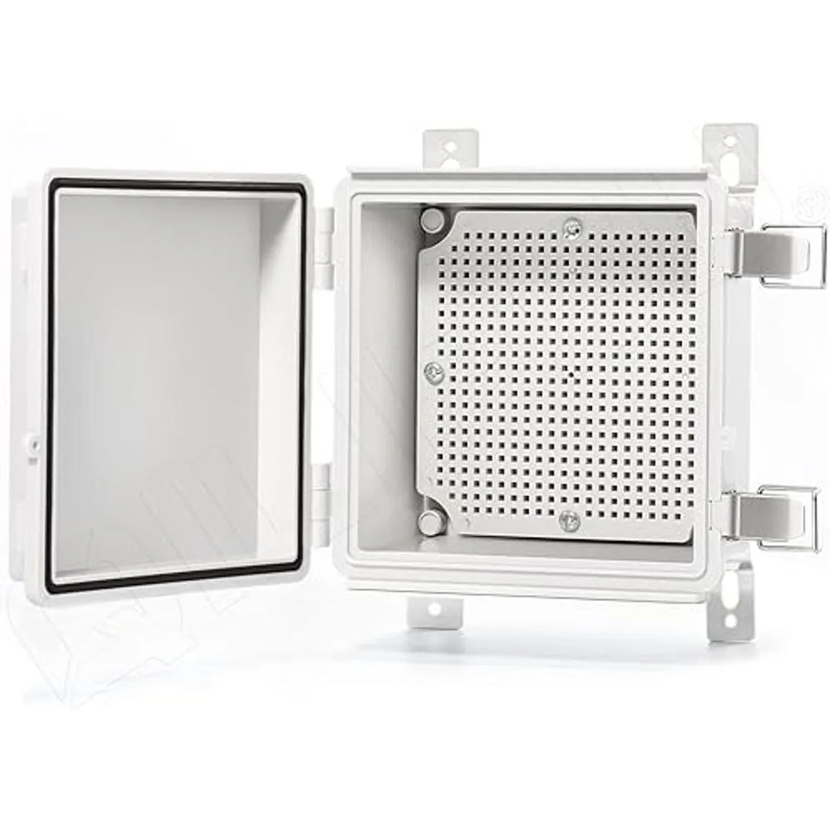 QILIPSU Caja de conexiones con tapa con bisagras con placa de montaje, caja de proyectos universal IP67 impermeable, caja eléctrica para proyectos caseros, plástico ABS gris 5.9 x 5.9 x 3.5 pulgadas