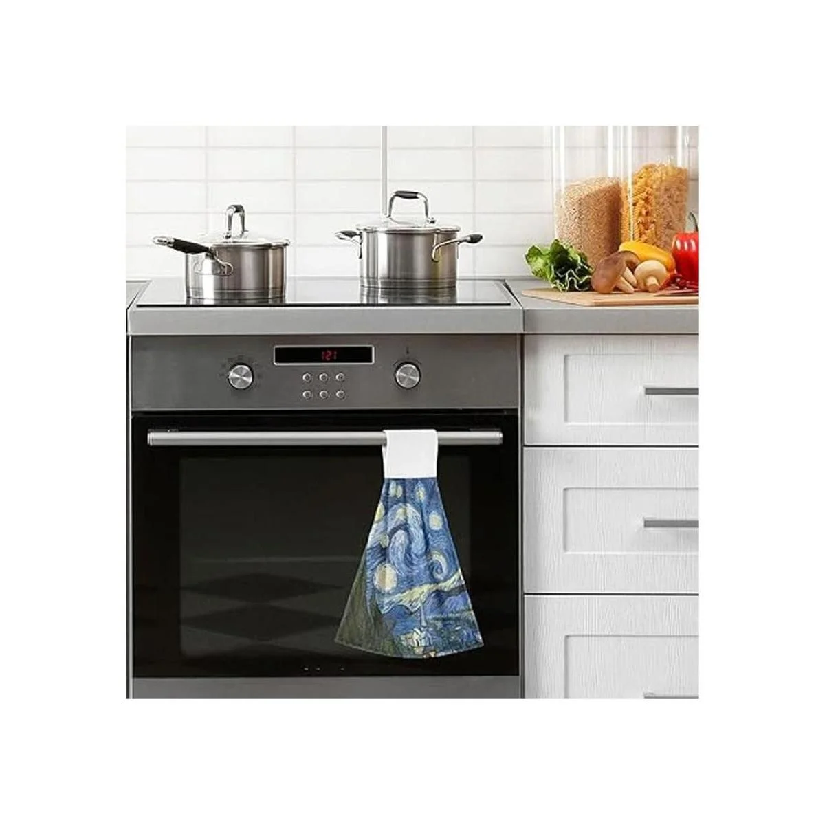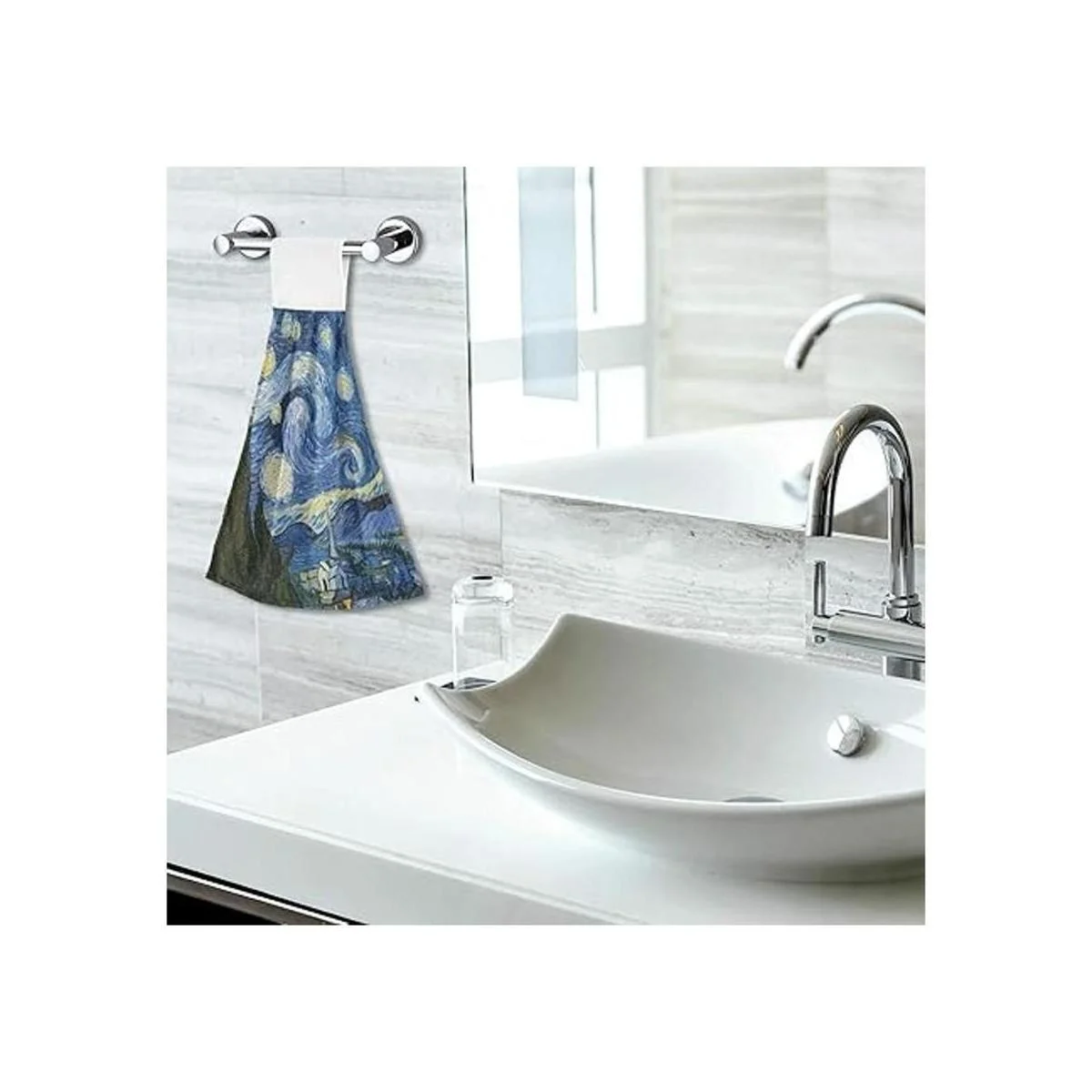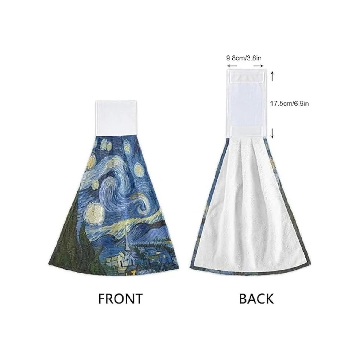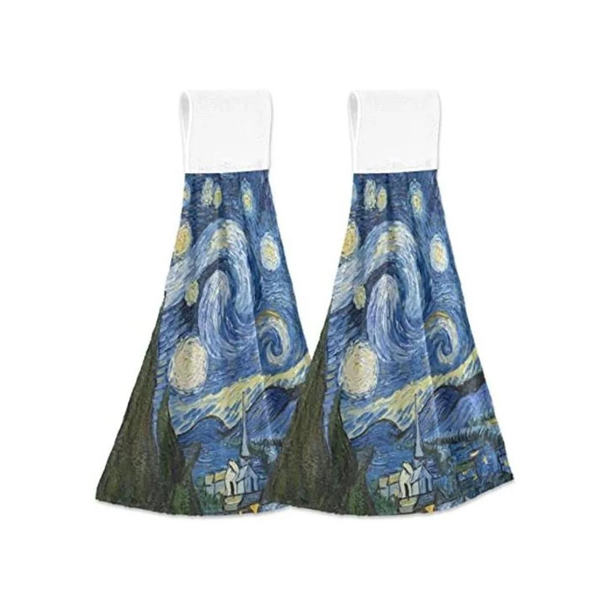 Qilmy Juego de 2 toallas de mano absorbentes con gancho y lazo, paños de cocina para baño, cocina, noche estrellada Van Gogh