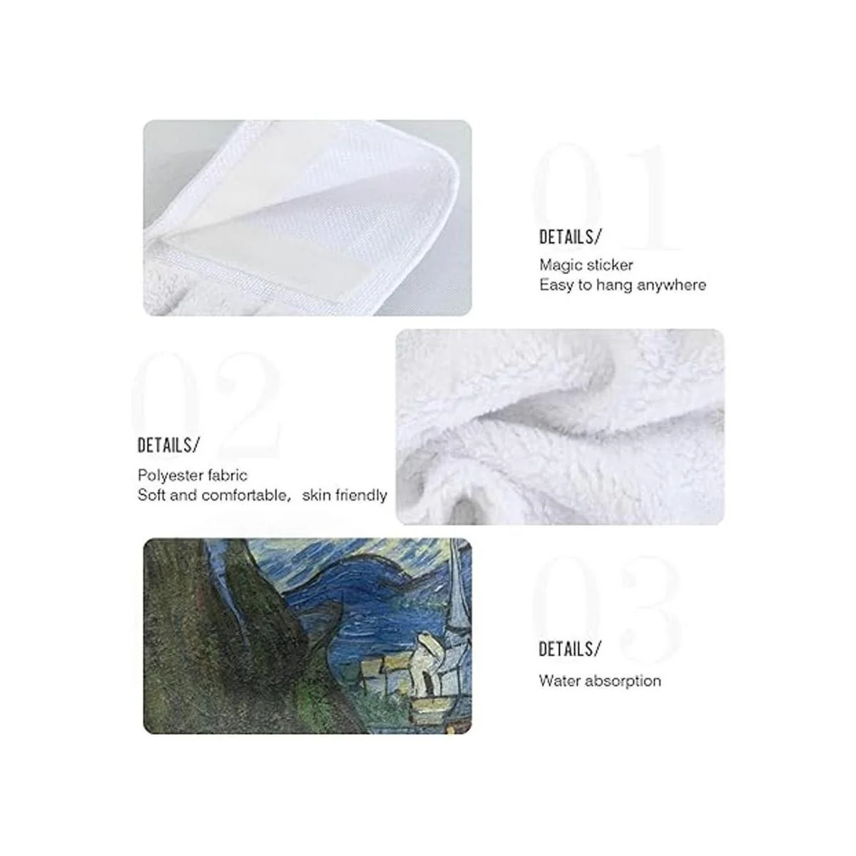 Cierre de gancho y bucle: esta toalla de mano de diseño popular viene con cierre de pasta mágica, fácil de colgar en la barra de la cocina o en el gancho de pared. Este diseño no solo asegura que la toalla de mano sea difícil de deslizar, sino que también es práctica para colgar o quitar.