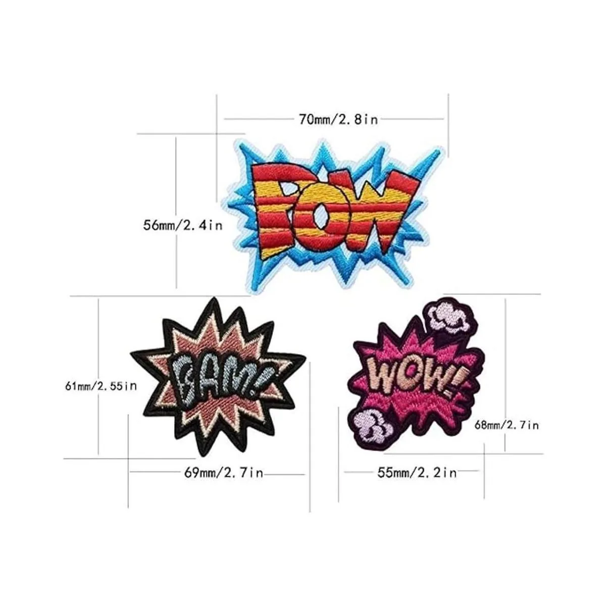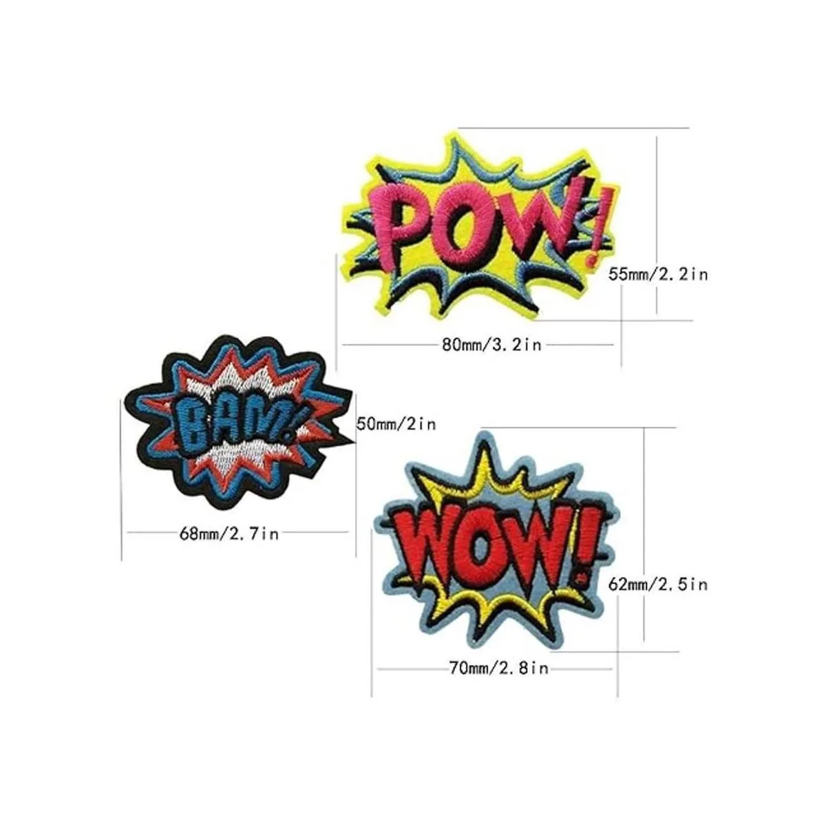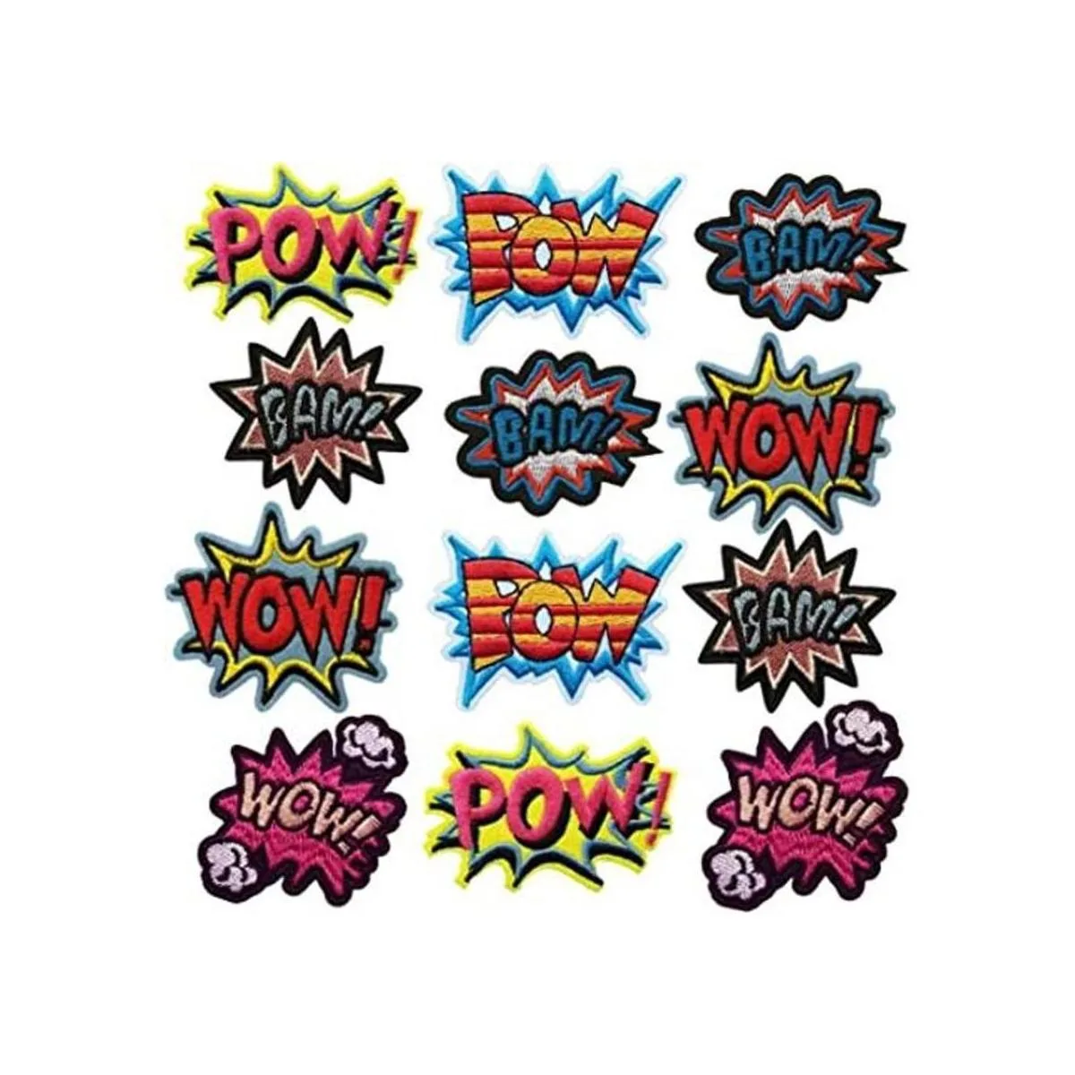 Qingxi Charm 12 piezas surtidas de letras Pow Bam Wow alfabeto para coser o planchar parches bordados para ropa, vestido, sombrero, pantalones, zapatos, cortina, costura, bricolaje, manualidades, parches, apliques vergonzosos