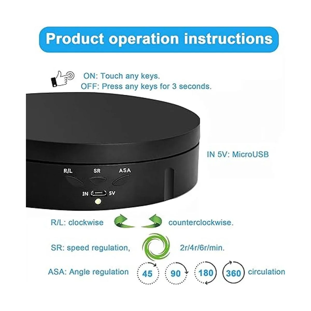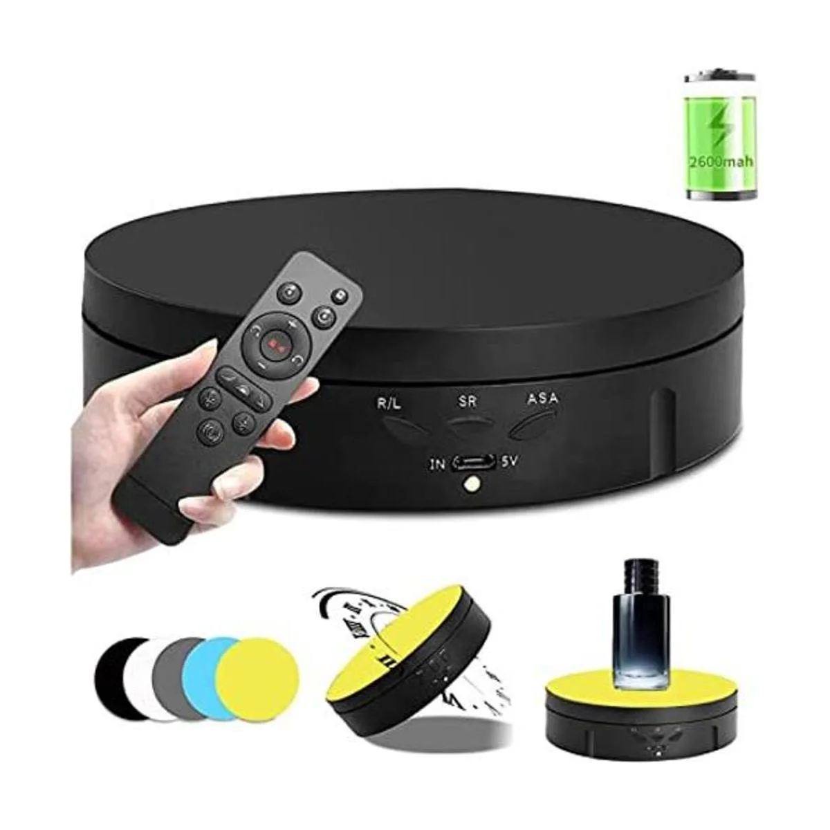Control remoto: ángulo de tocadiscos de control remoto infrarrojo, velocidad, dirección, varios modos de rotación. Puedes ajustar nuestro soporte giratorio de fotografía profesional con control remoto para obtener tus diferentes necesidades.