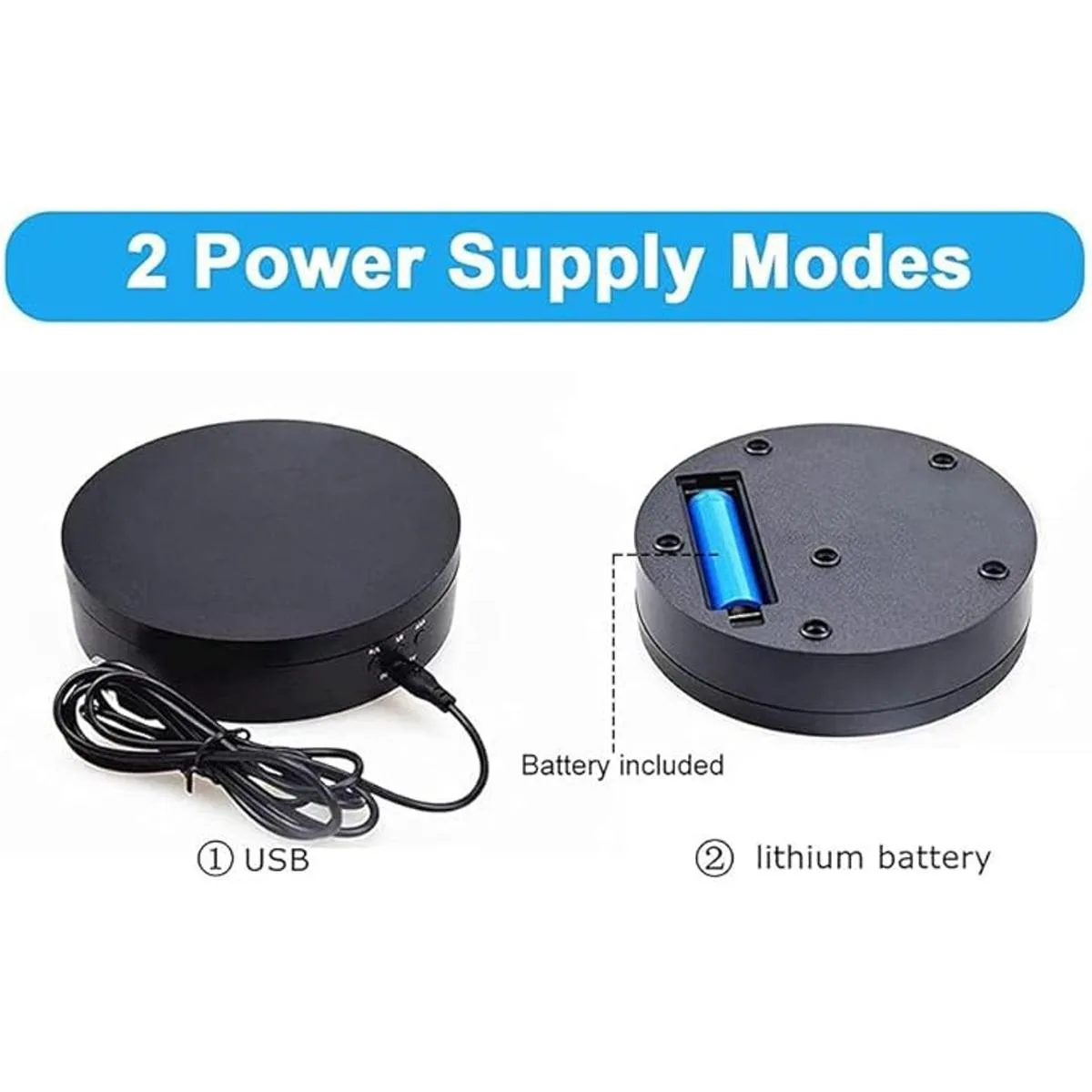 Tres modos de fuente de alimentación disponibles: el soporte de pantalla eléctrica es para fuente de alimentación de CA de enchufe directo USB, fuente de alimentación de banco de energía USB y fuente de alimentación de batería recargable. El tamaño del tocadiscos es de 5.75 x 5.75 x 1.38 pulgadas, y la capacidad máxima de carga se diferencia de acuerdo con la velocidad de rotación, el máximo es de 22.0 lbs.