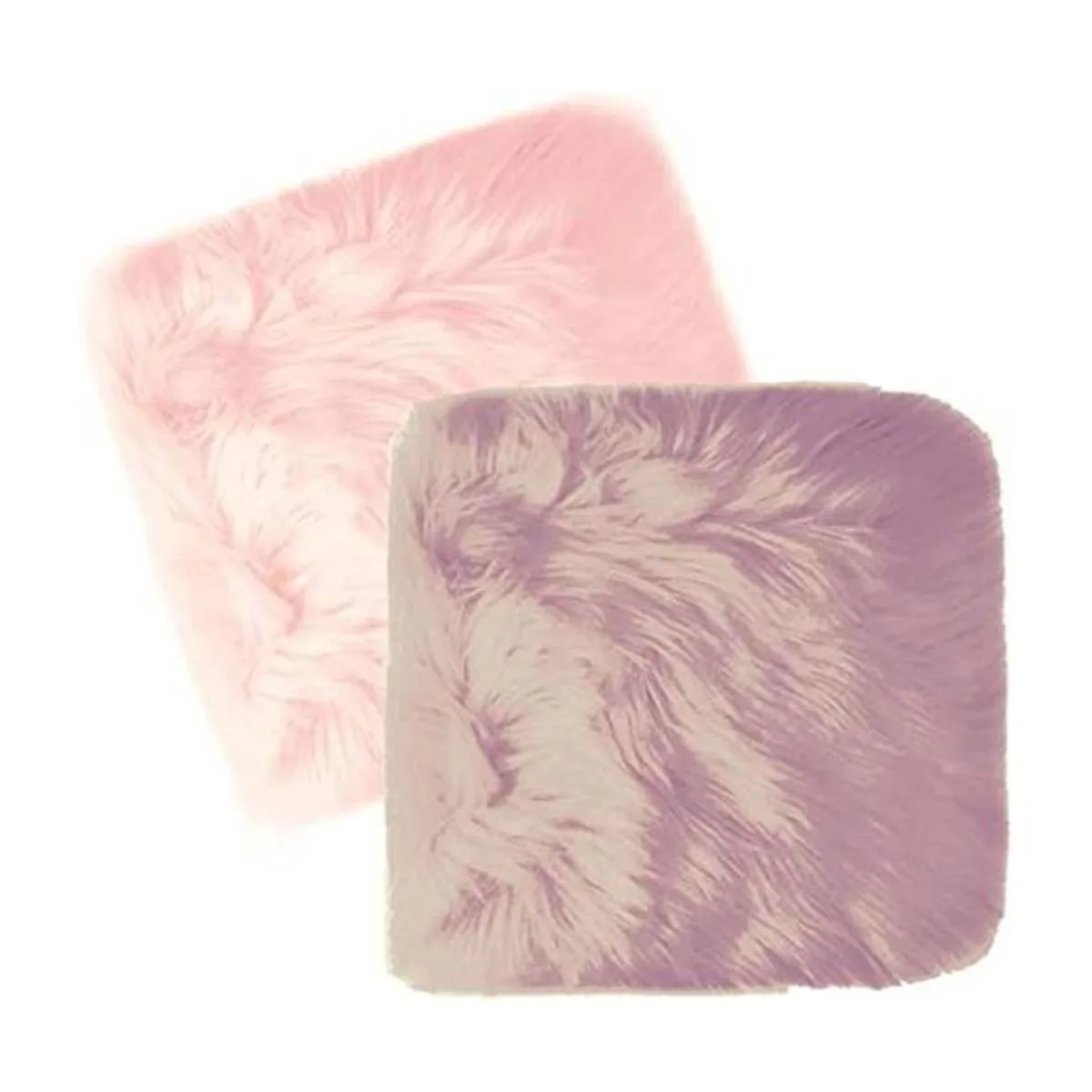 Qioly Paquete de 2 alfombras de piel sintética con cojín de felpa cuadrada esponjosa, fondo de lujo para artículos pequeños, joyas, fotos de escritorio de uñas, exhibición de productos y decoración de casilleros escolares rosa morado
