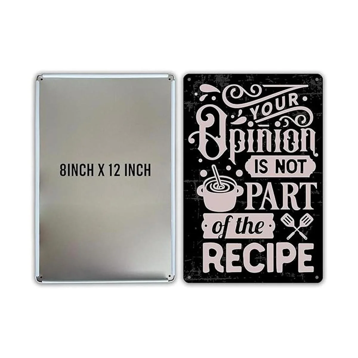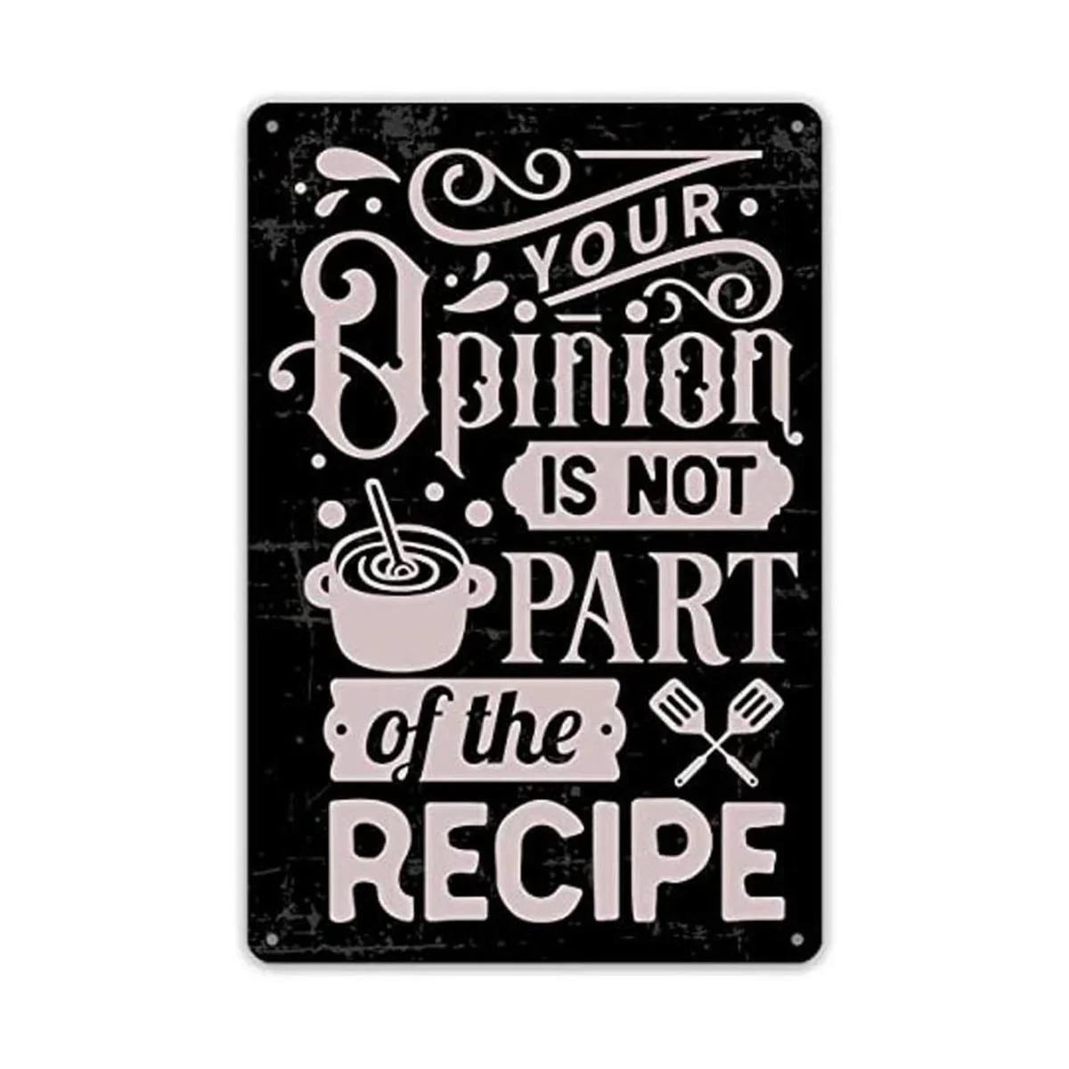 QIONGQI Funny Kitchen Quote Metal Tin Sign Decor Your Opinion is Not Part of the Recpe Sign for Home Kitchen Decor Gifts