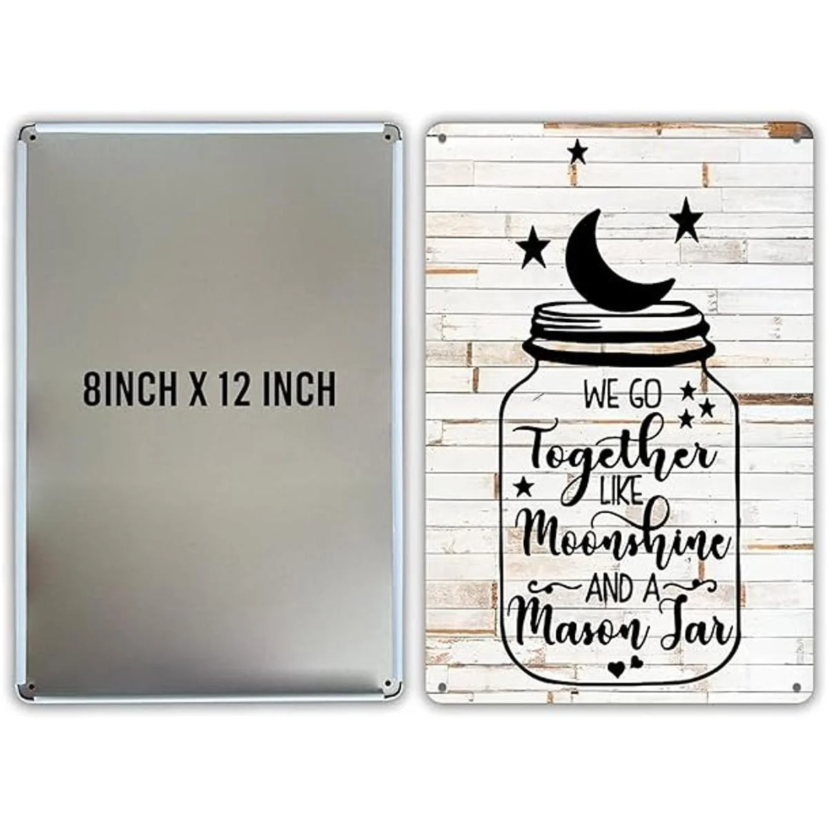 QIONGQI Funny We Go Together Like Moonshine in a Mason Jar Metal Tin Sign Decoración de pared rústica Farmhouse Sign para el hogar comedor jardín decoración regalos