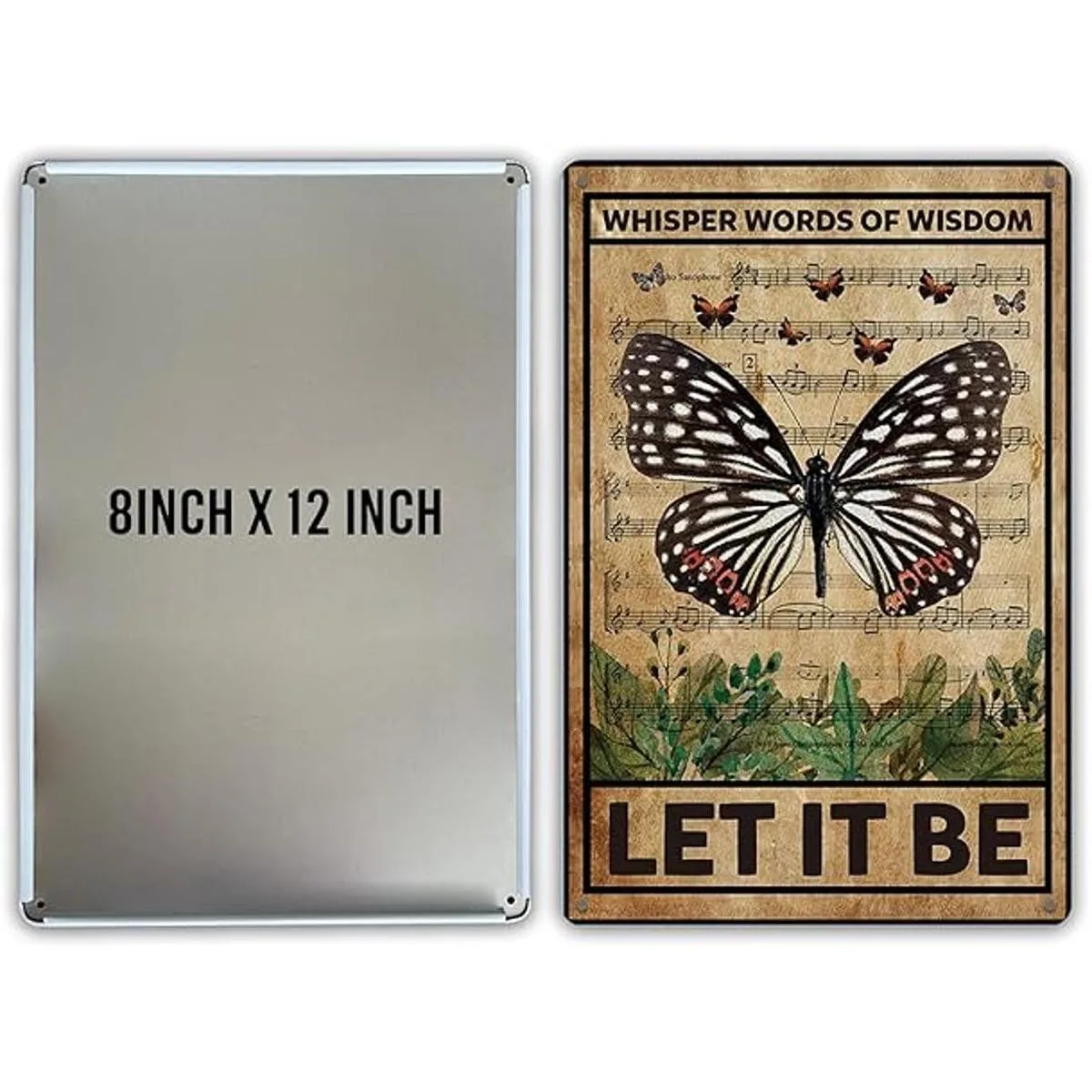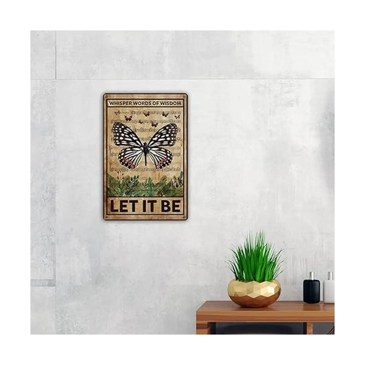 QIONGQI Letrero de metal Let It Be The Beatles para decoración de pared, diseño retro con palabras de sabiduría y mariposas