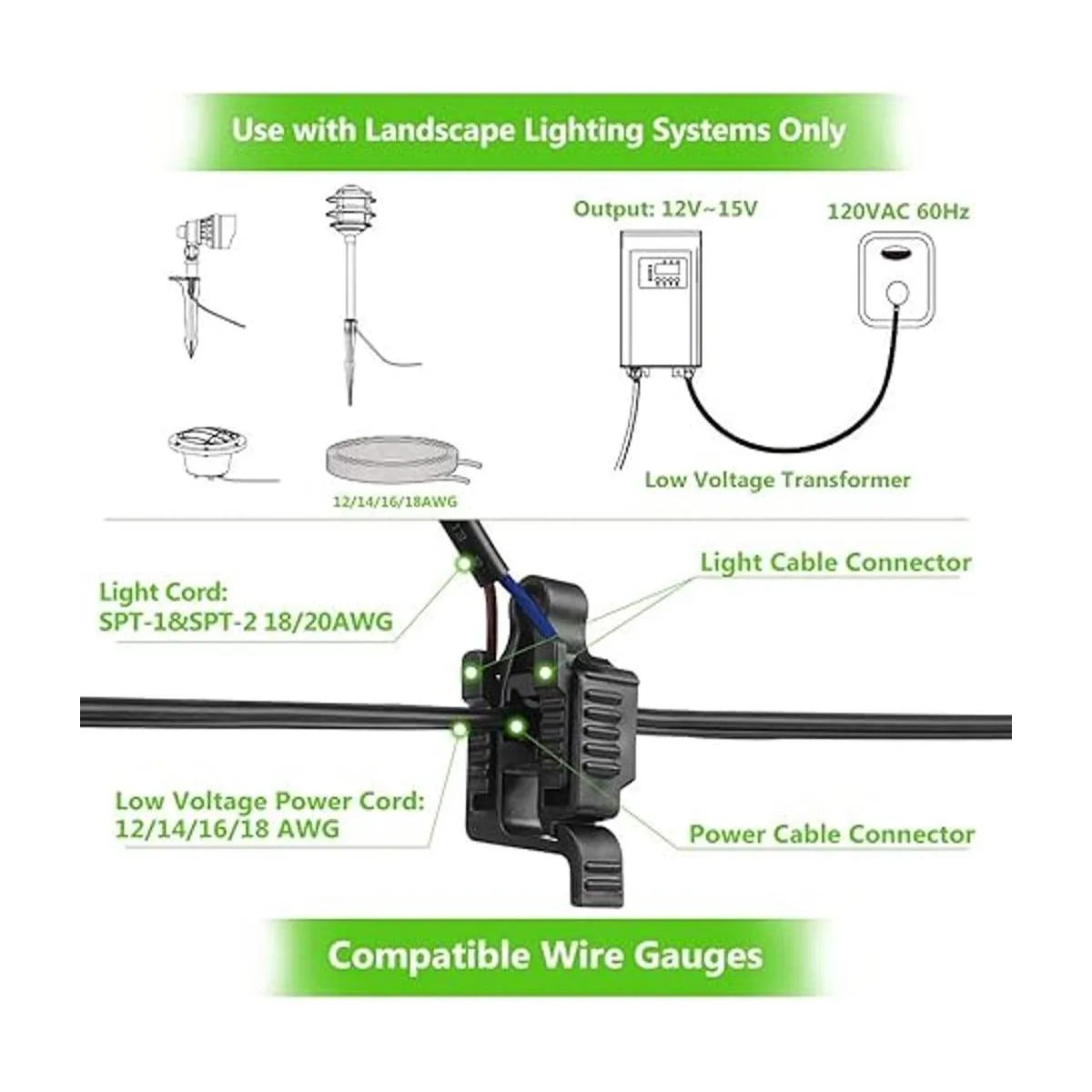 Compatible con cable 1218 AWG: amplia compatibilidad, los conectores de cable QITIM funcionan con cable de calibre 12/14/16/18 para luces de paisaje de bajo voltaje. Buena opción para reemplazar conectores defectuosos instalados alrededor de tu casa.