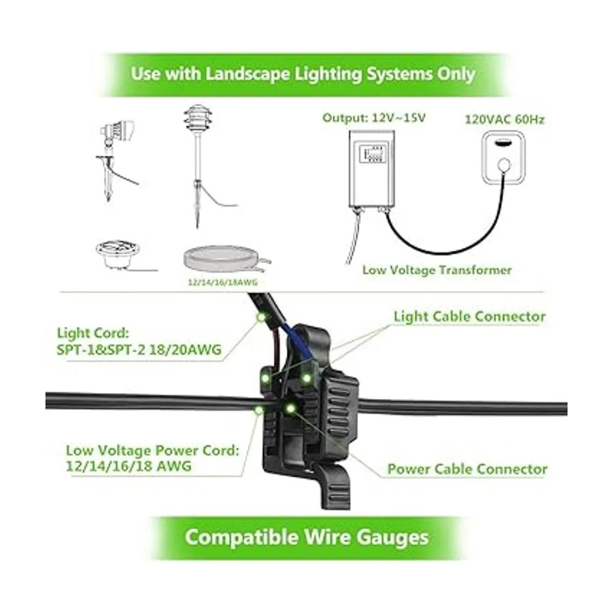 Compatible con cable 1218 AWG Amplia compatibilidad, los conectores de cable QITIM funcionan con cable de calibre 12/14/16/18 para luces de paisaje de bajo voltaje. Buena opción para reemplazar conectores defectuosos instalados en tu casa.