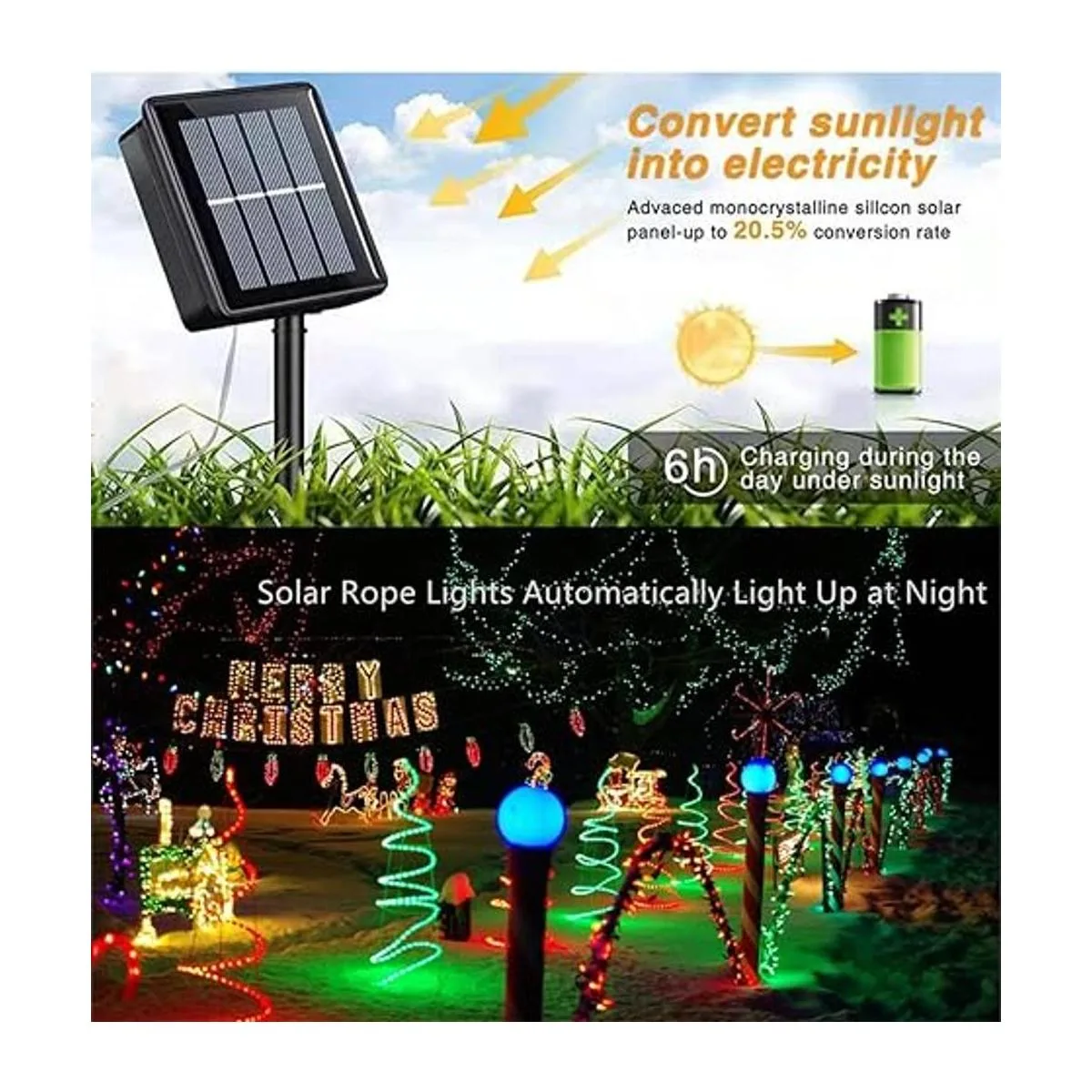 Decoración brillante para exteriores: las luces solares de cuerda son solares, por lo que no hay miedo a la electrocución accidental y iluminan perfectamente la zona del borde de la piscina para nadar nocturnos y dan un agradable efecto nocturno. La longitud de 33 pies es perfecta para poner alrededor de una barandilla de jardín o porche. Son el toque final para un árbol de plam, piscina, cenador, pasarela, camino, cubierta, barbacoa de patio trasero, fiesta, corona, valla, patio, arbusto, vacaciones, interior y exterior.