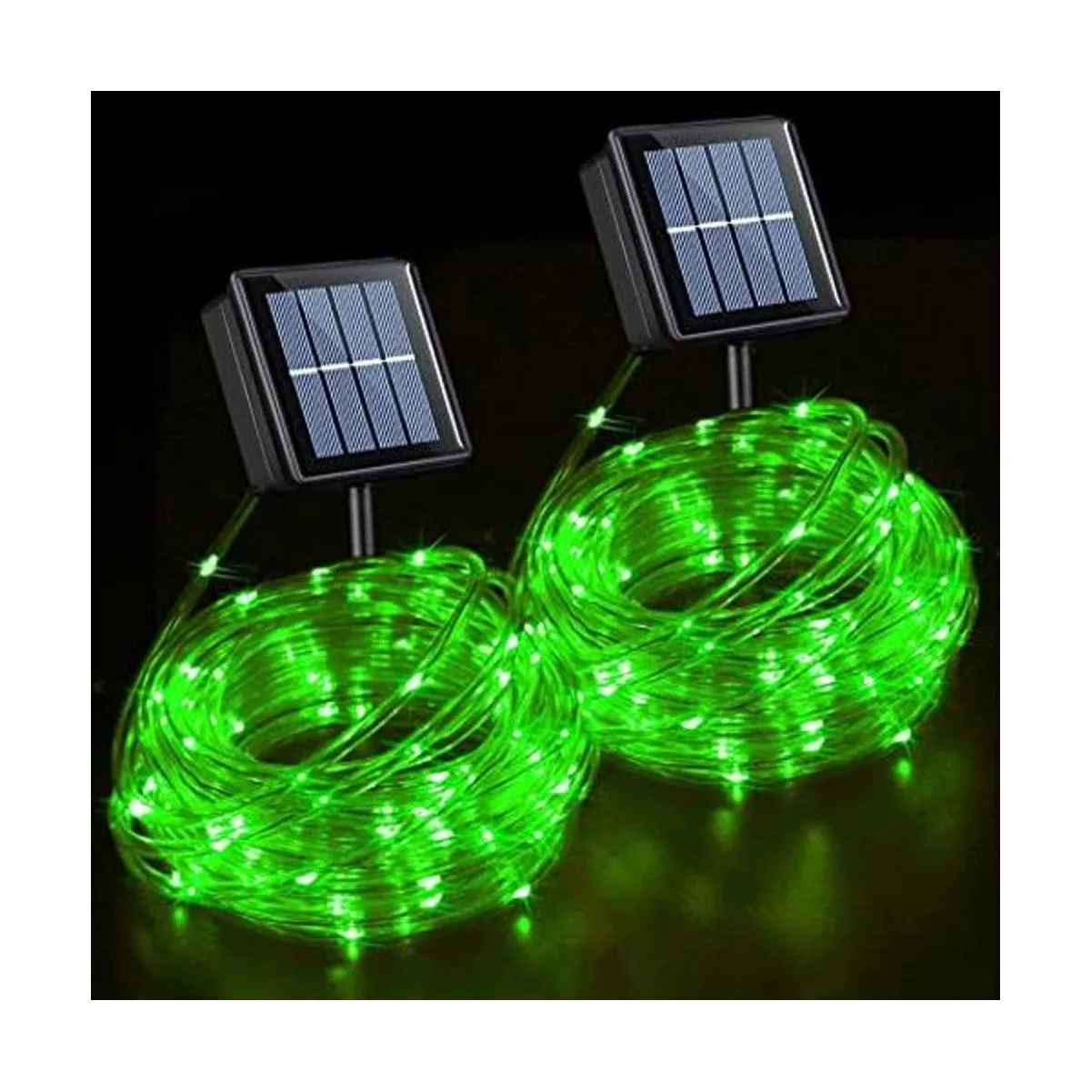 QITONG Paquete de 2 luces solares verdes de cuerda de luces solares para exteriores, impermeables, LED de 66 pies, 200 LED, 8 modos de luces de Navidad alimentadas por energía solar con tubo de PVC, luces de hadas para decoración de Navidad al aire libre