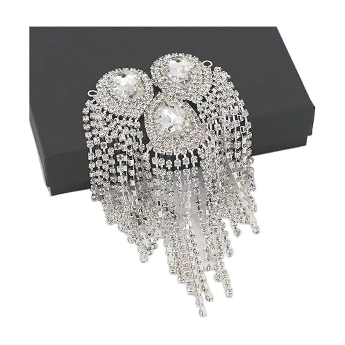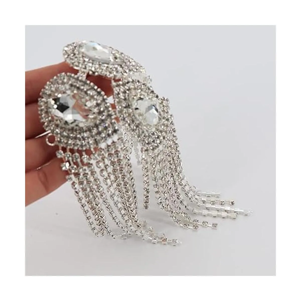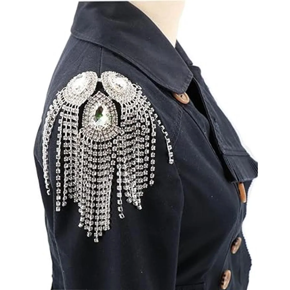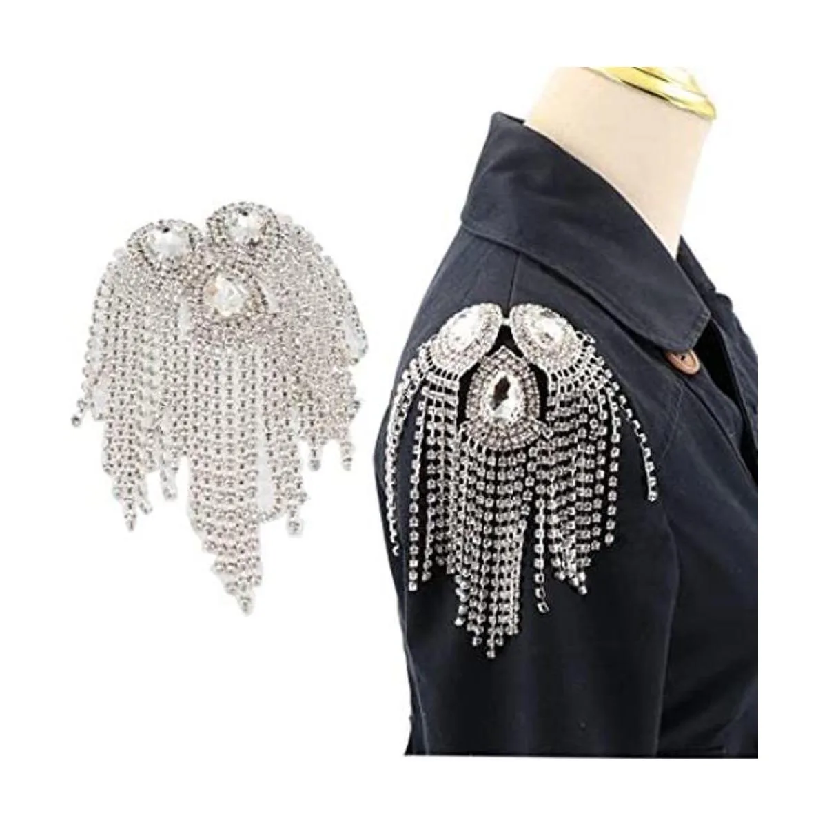 Qlavoca Parches de costura de hombro con flecos de cristal, parches de costura para bricolaje y mujer, accesorios de moda, paquete de 2 unidades