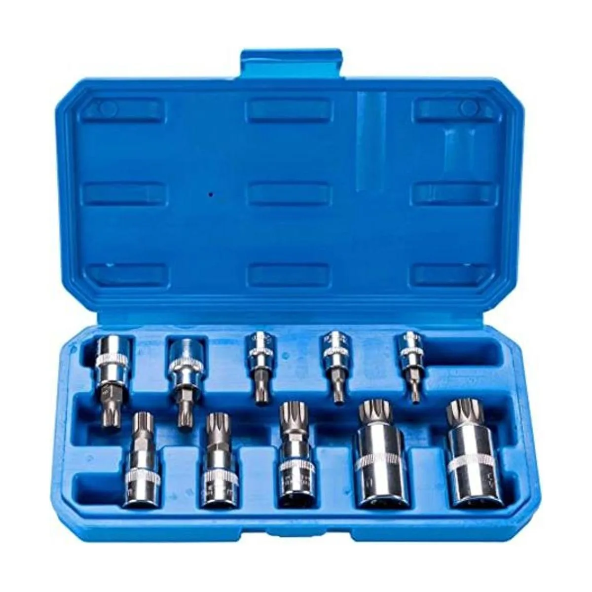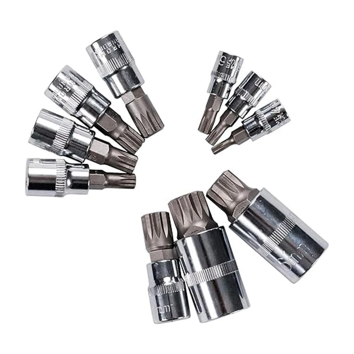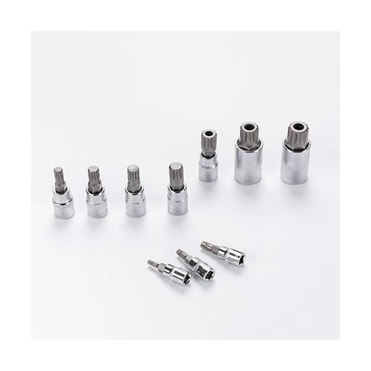 Qnkaa XZN Juego de llaves de punta estriada triple cuadrada, 10 piezas plateadas M4 M18, acero de aleación S2 de alta calidad, 14 de pulgada 38 de pulgada