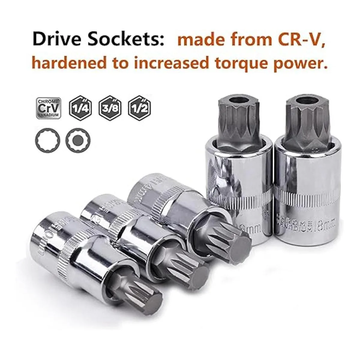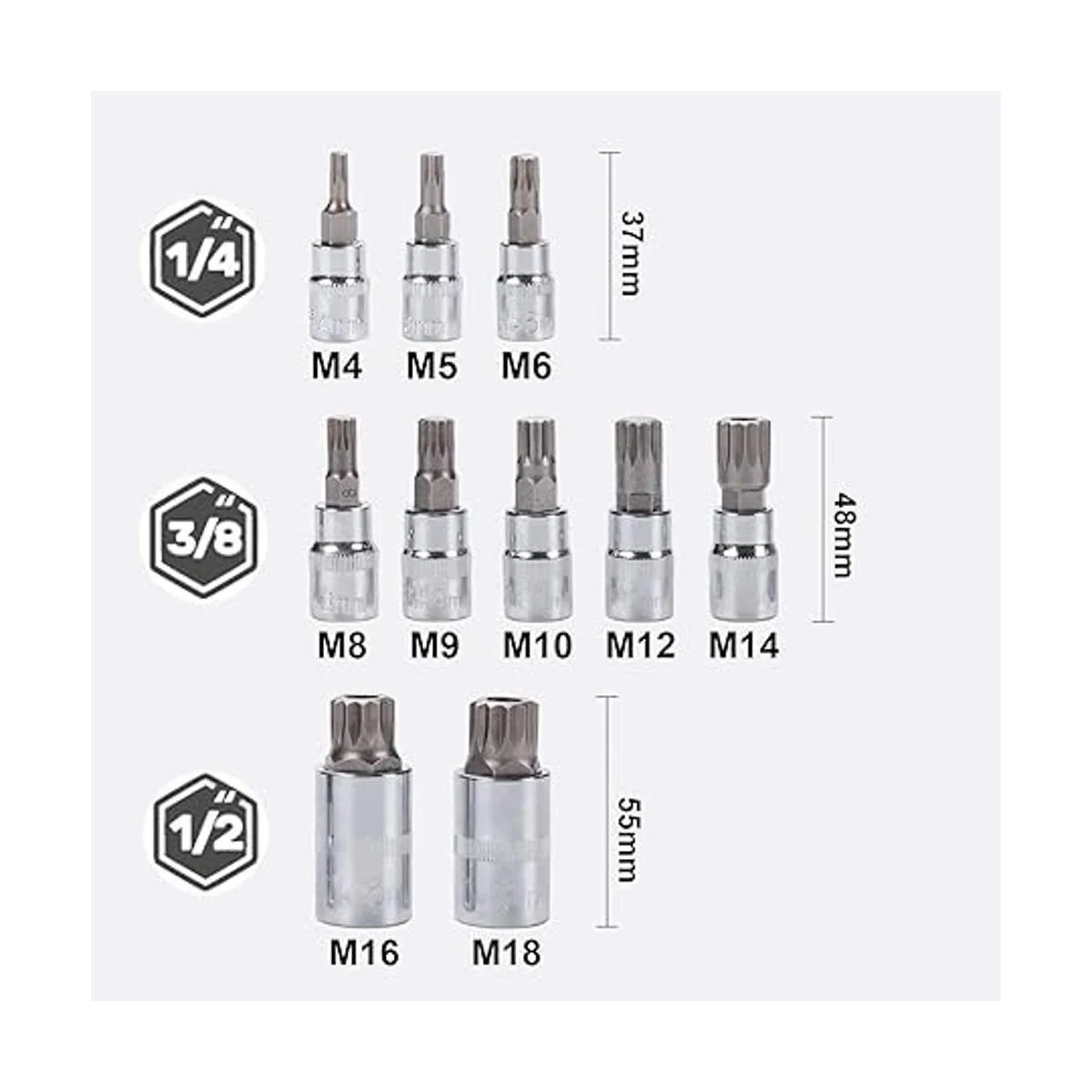El juego de llaves de vaso triple cuadrado Contenido: 1/4 Unidad: M4, M5, M6, 3/8 Unidad: M8, M9, M10, M12, M14, 1/2 Unidad: M16, M18.