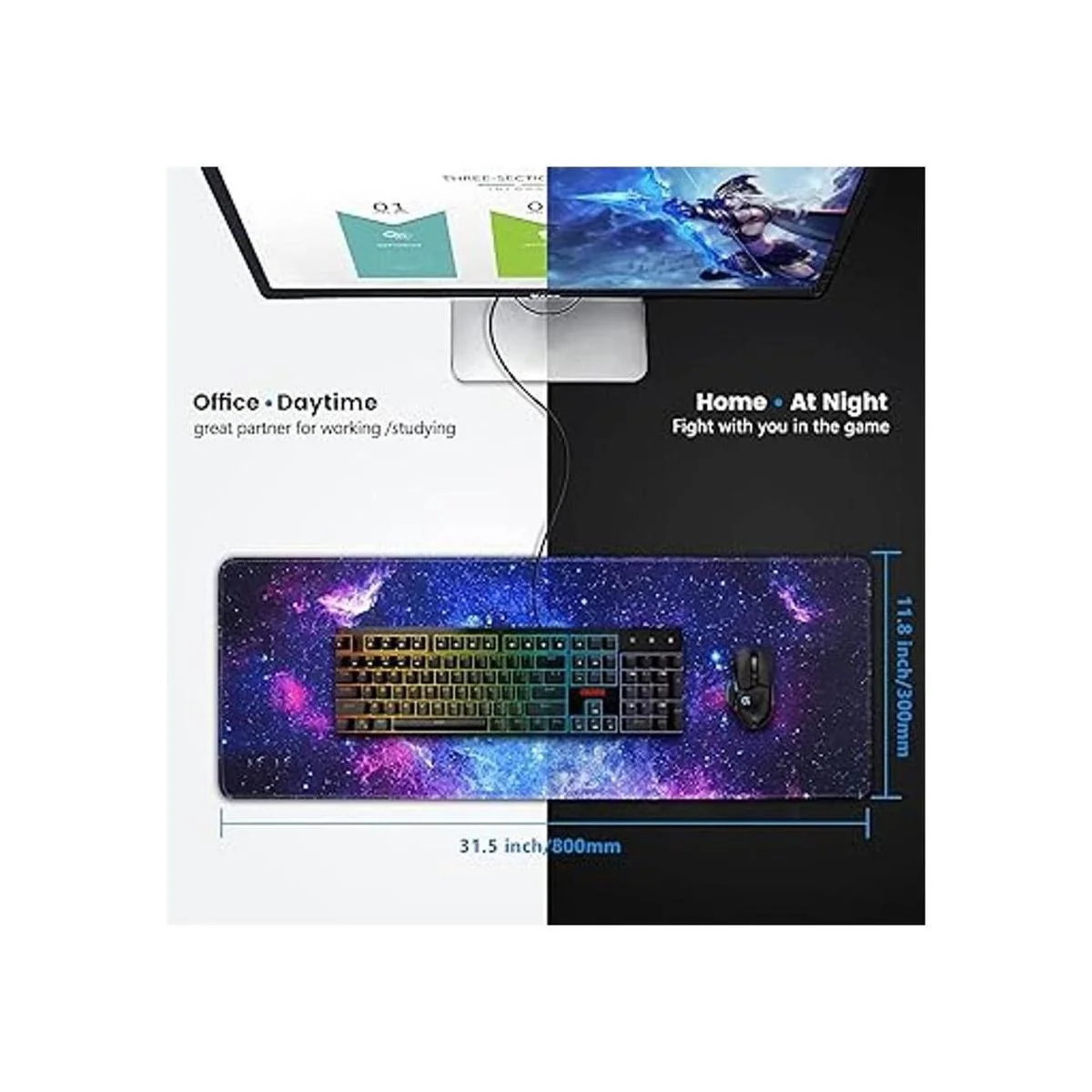 QOMOLAMA Alfombrilla de ratón grande para juegos, XL 31. 5 x 11.8 pulgadas, alfombrilla de escritorio para computadora portátil con bordes cosidos, alfombrilla de mouse impermeable para jugadores en casa y oficina, galaxia