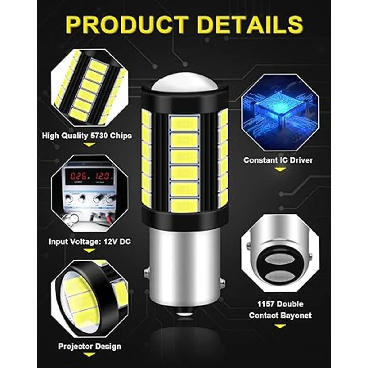 Alto rendimiento: paquete de 10. Las bombillas LED 1157 adoptan 33 chips 5730. Controlador IC inteligente integrado para proteger la línea de alimentación original del vehículo. El diseño único de la lente puede hacer que la luz brille más lejos. Luz trasera blanca superbrillante de 500 lúmenes.