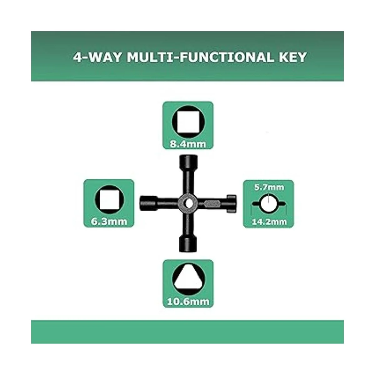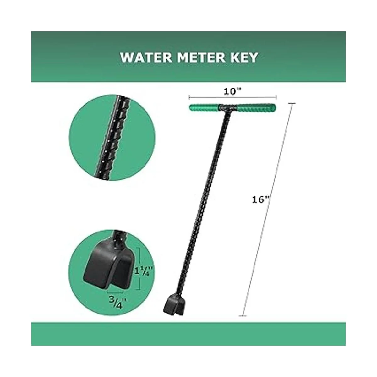 QPURO Kit de llave de medidor de agua de 16 pulgadas Herramienta de cierre de agua de grado industrial Incluye herramienta multifuncional de 4 vías y llave de agua Sillcock de 4 vías para válvulas, grifos y espitas