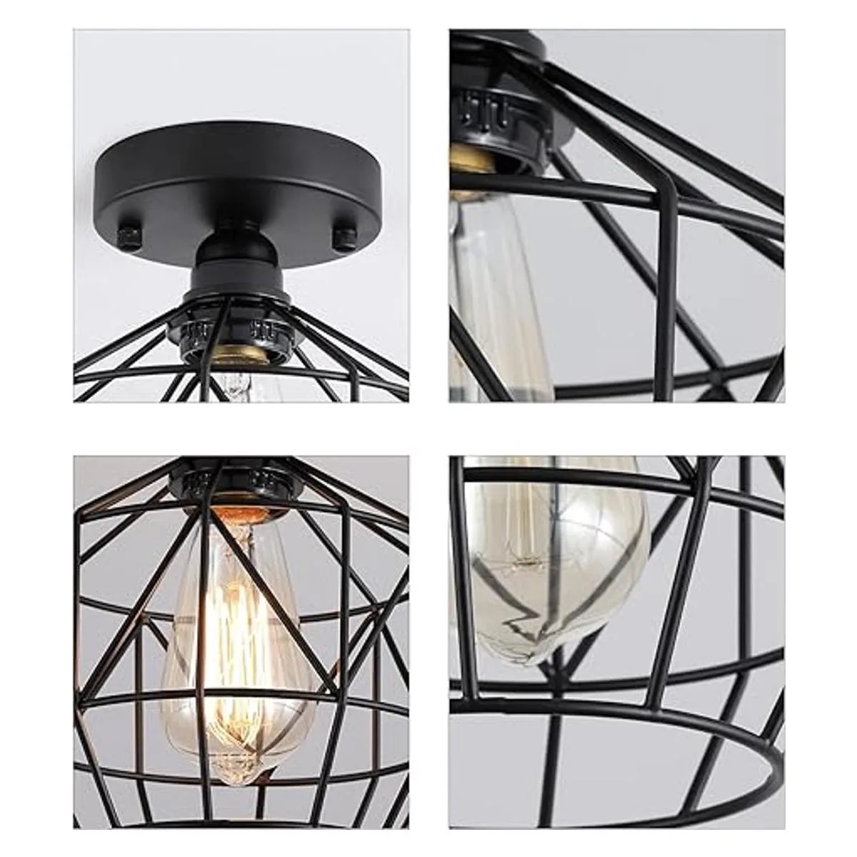 QS Lámpara de techo de montaje semiempotrada negra industrial vintage retro jaula RV pequeña lámpara de techo para pasillo, armario, cocina, escalera y dormitorio