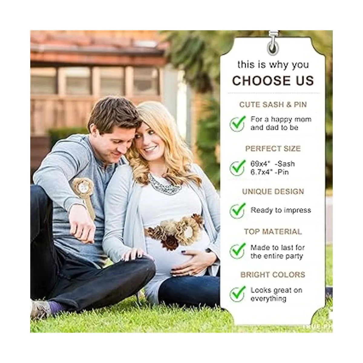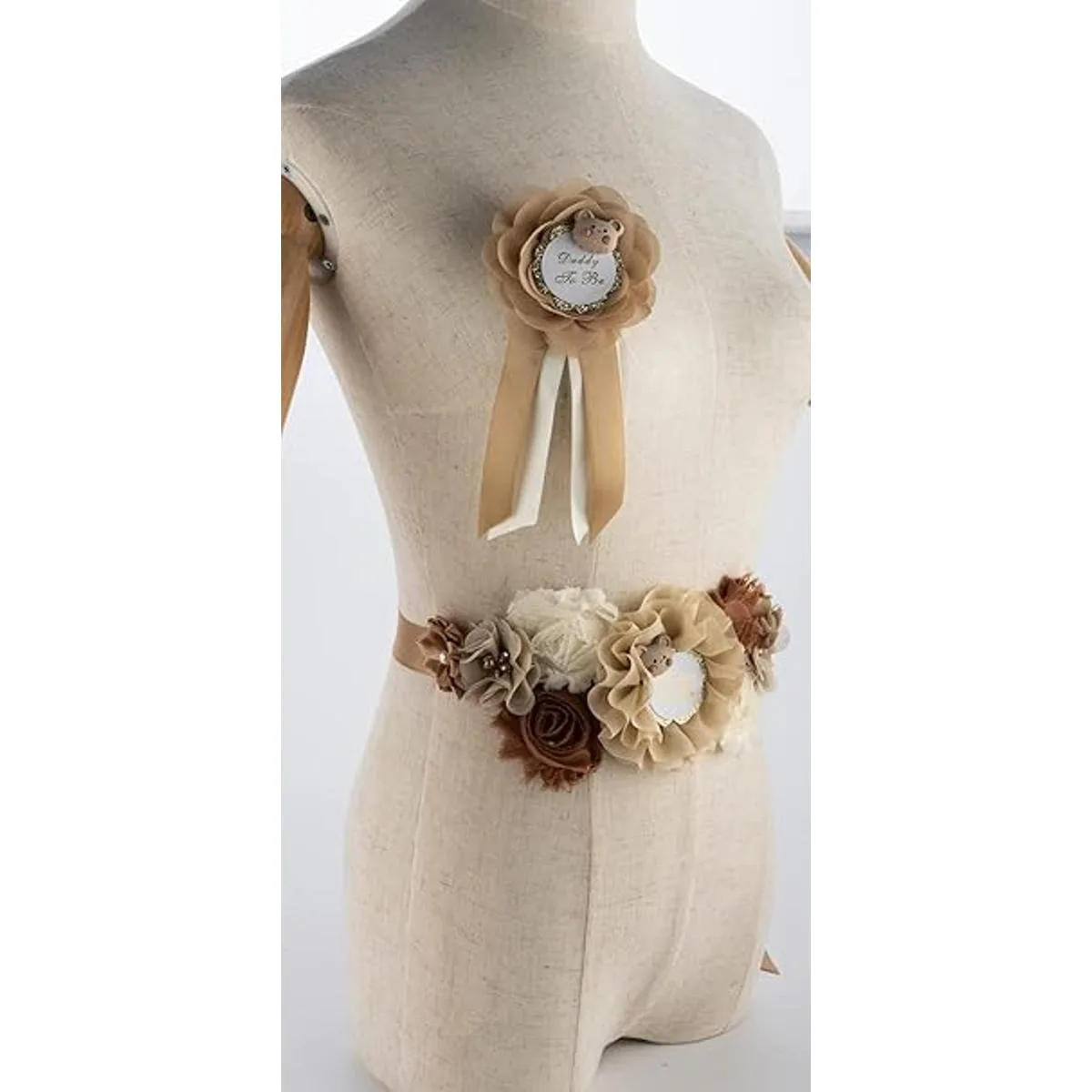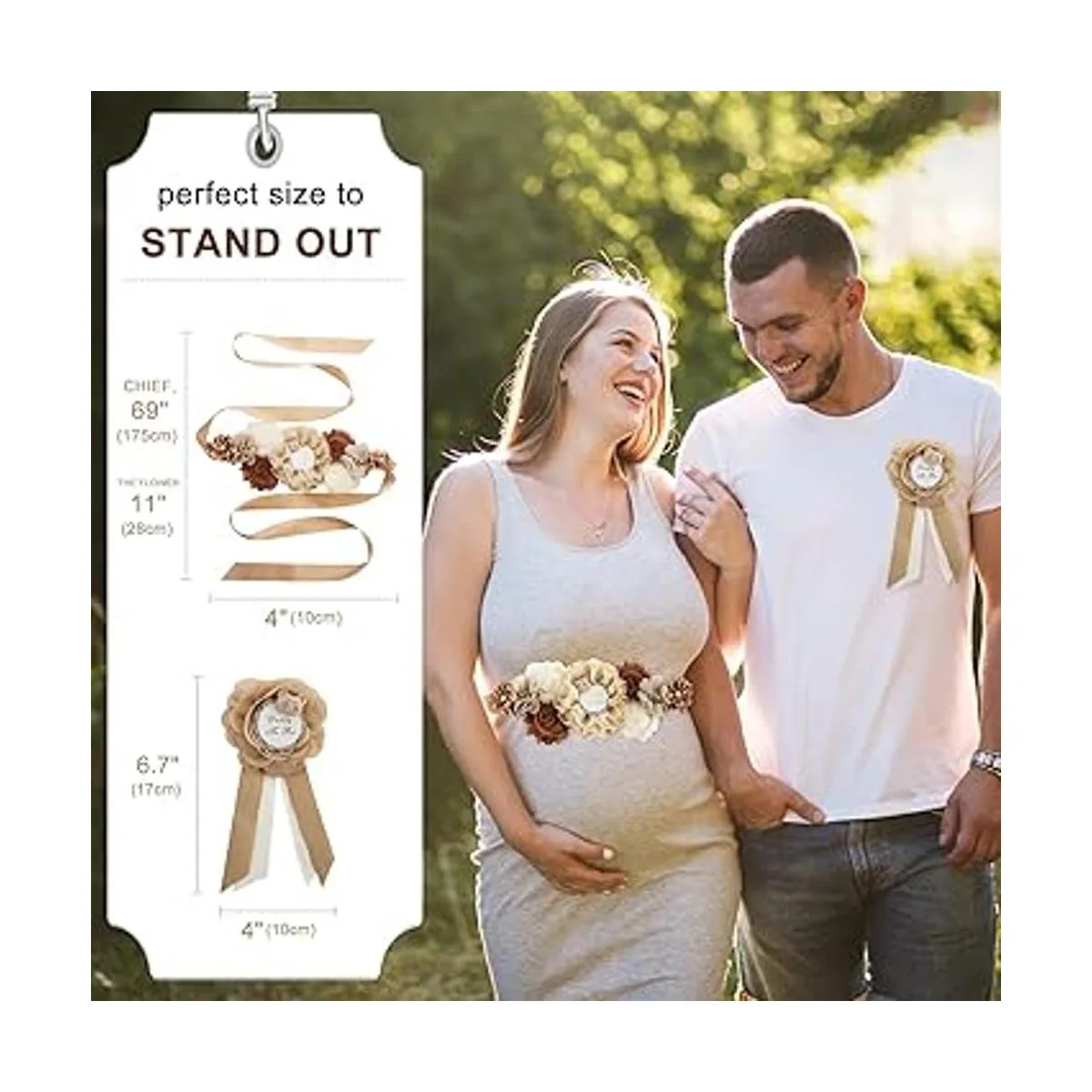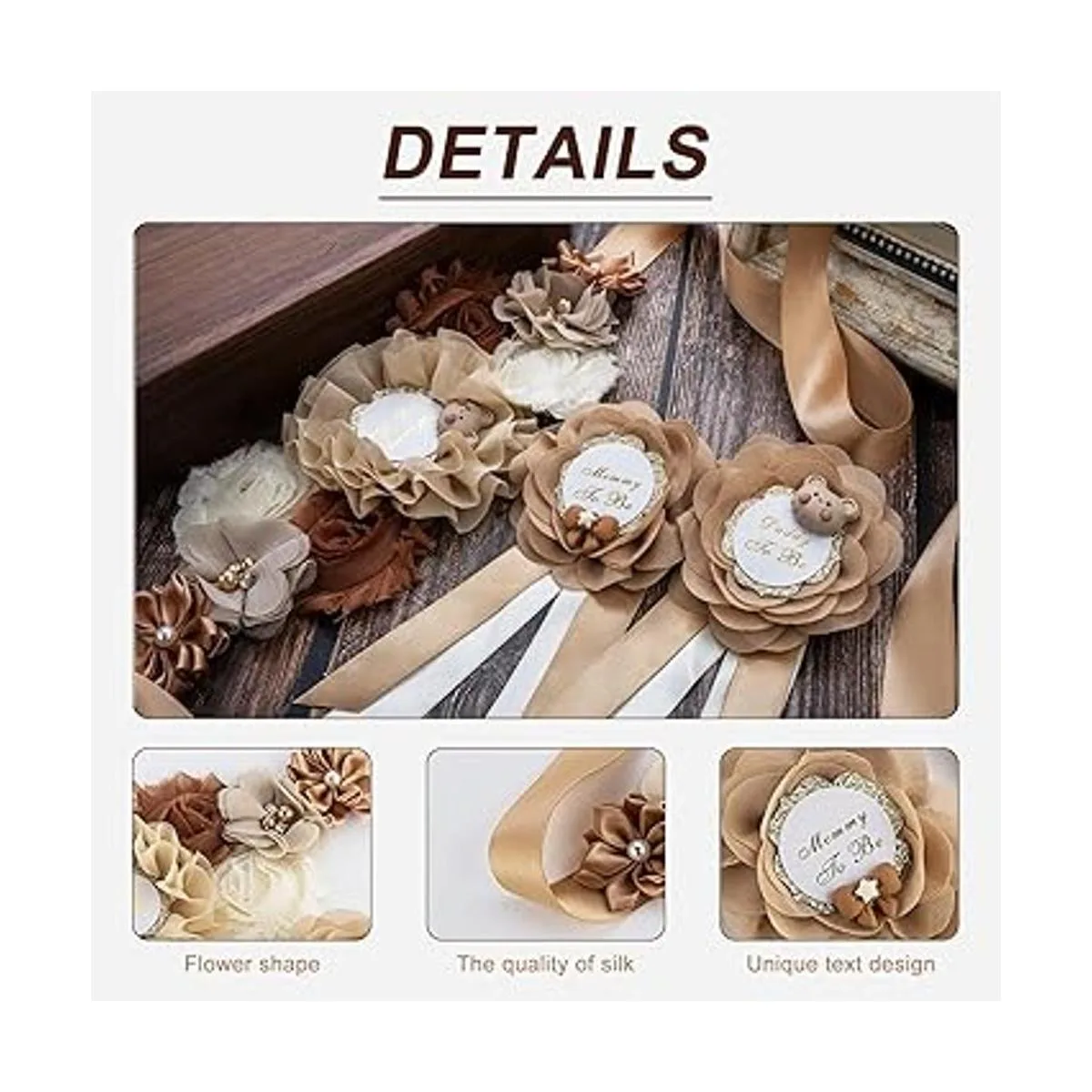 Exquisito y bonito: la banda para mamá cuenta con una variedad de flores marrones y beige adornadas con un hermoso centro de perlas y diamantes de imitación. Perfecto para embellecer tu fiesta de revelación de género, baby shower, sesión de fotos de novia o boda.