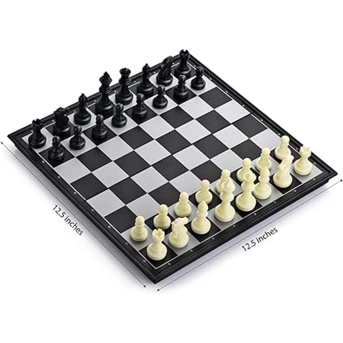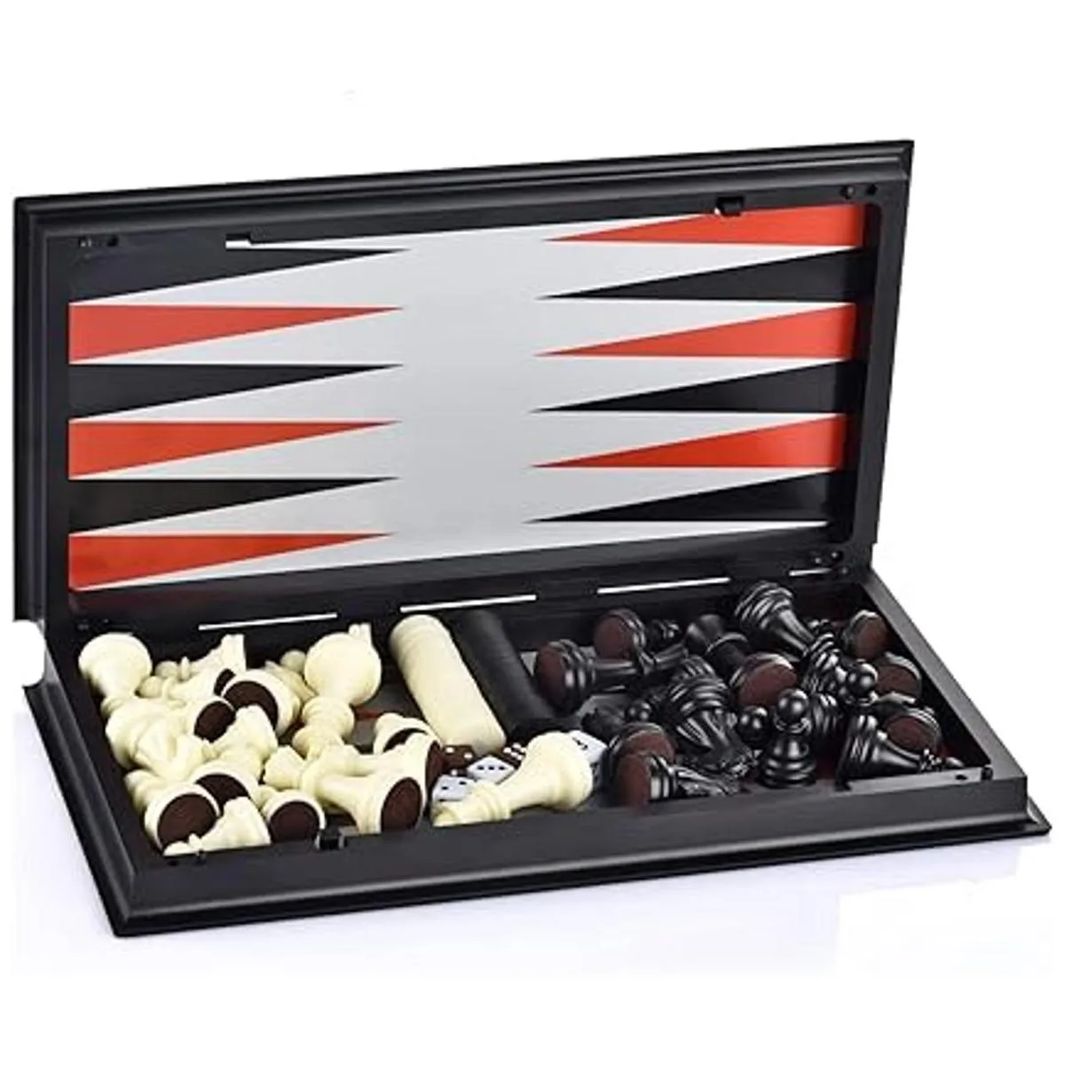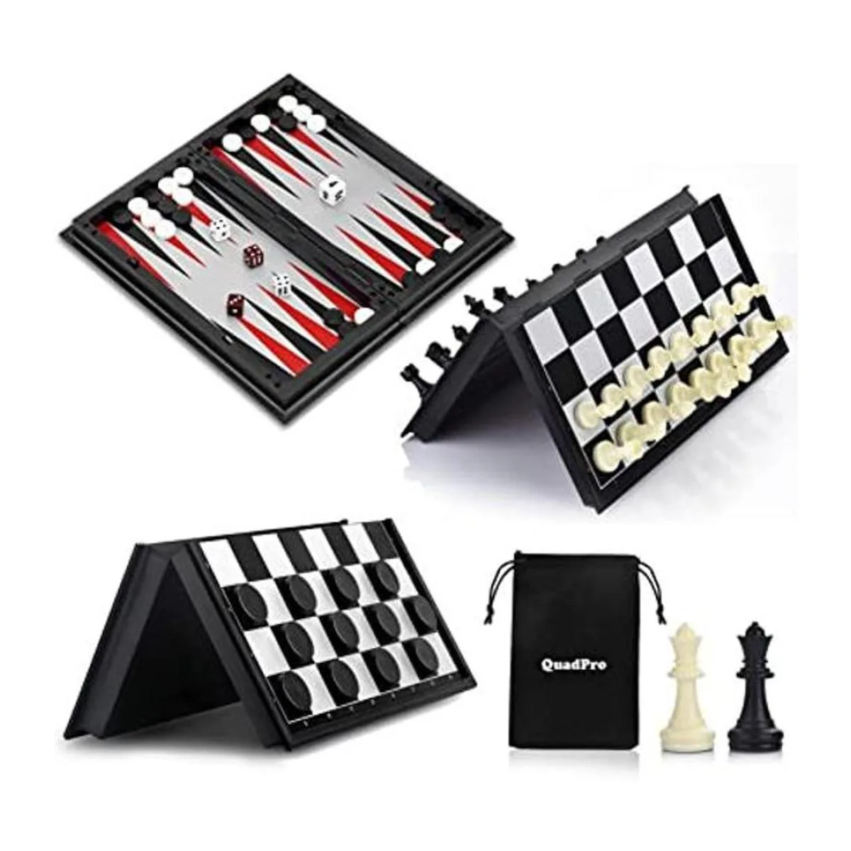 QuadPro Juego de tablero de ajedrez magnético 3 en 1 con diseño de damas, juego de mesa plegable para niños y adultos ajedrez blanco y negro