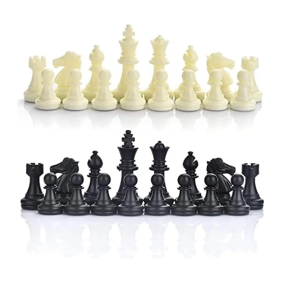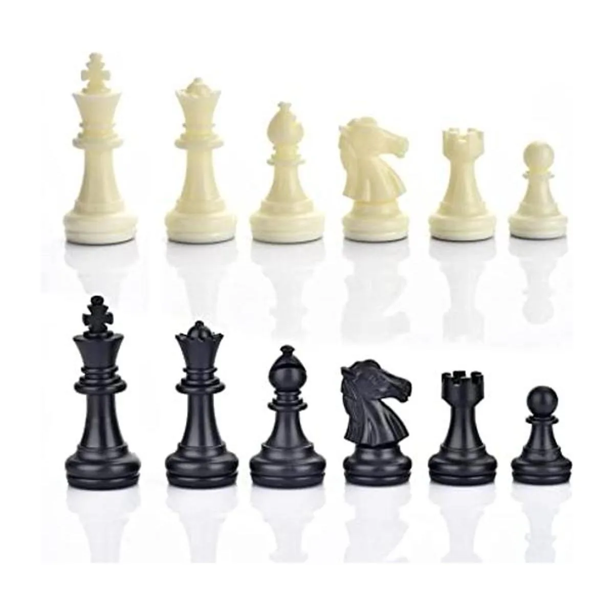 Tamaño del producto: la altura del tamaño King es de 1.96 pulgadas. Los demás: reina, torre, obispo, caballero, peones están en proporción. Un juego completo de piezas de ajedrez de repuesto adecuadas para un tablero de ajedrez. El contenido del paquete es solo piezas de ajedrez.