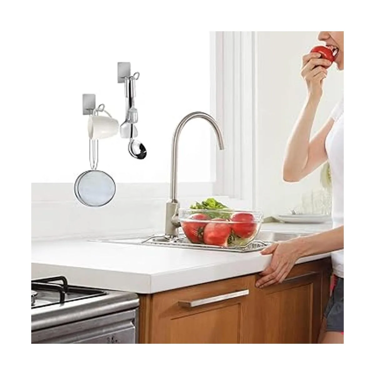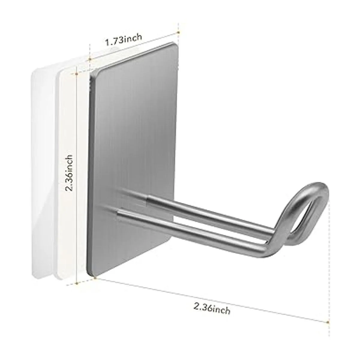 Quavzotu Ganchos adhesivos, gancho para toalla de acero inoxidable, gancho adhesivo para cocina y puerta, ganchos de pared de baño para colgar toallas, batas, sombreros, abrigos y llaves, paquete de 4 unidades plateado