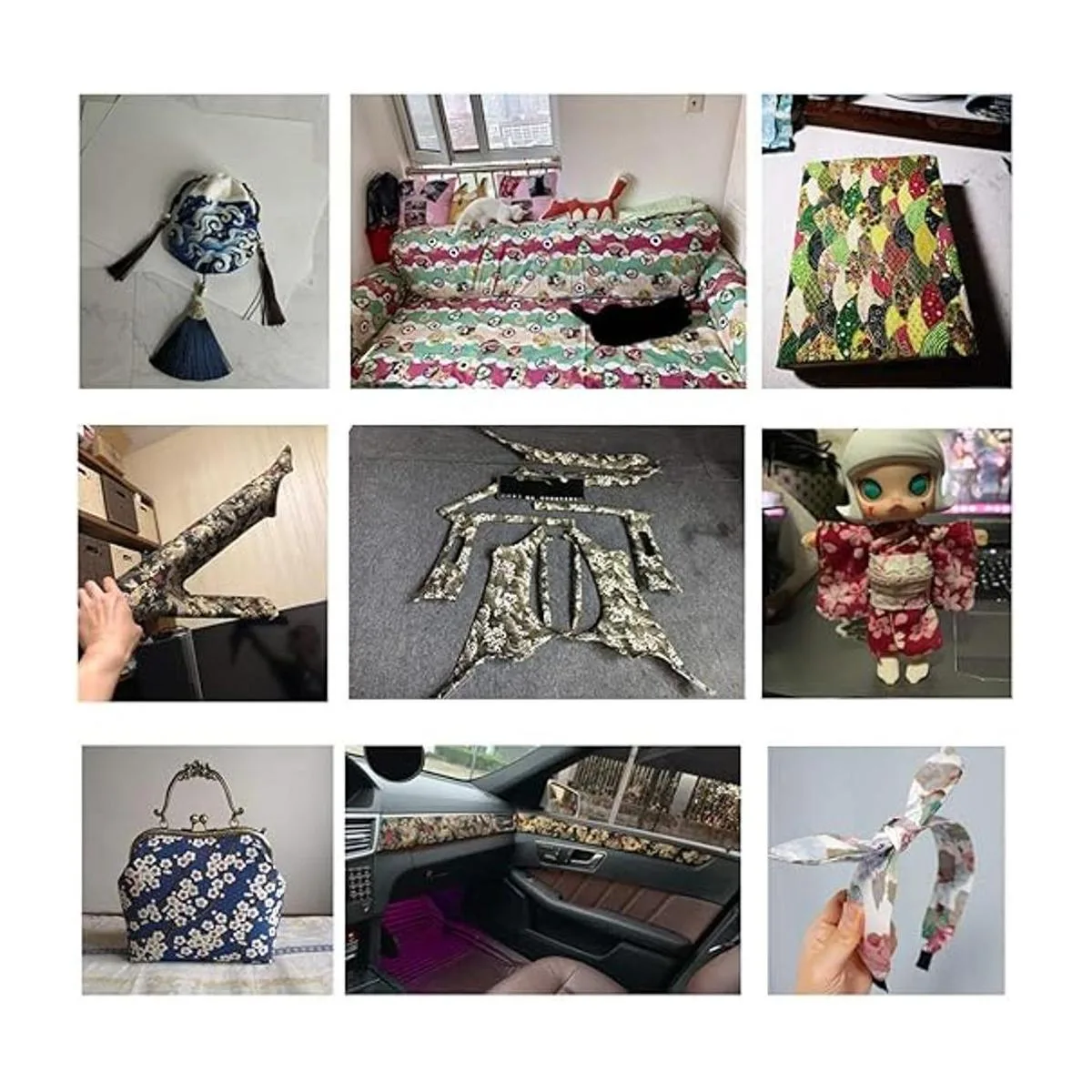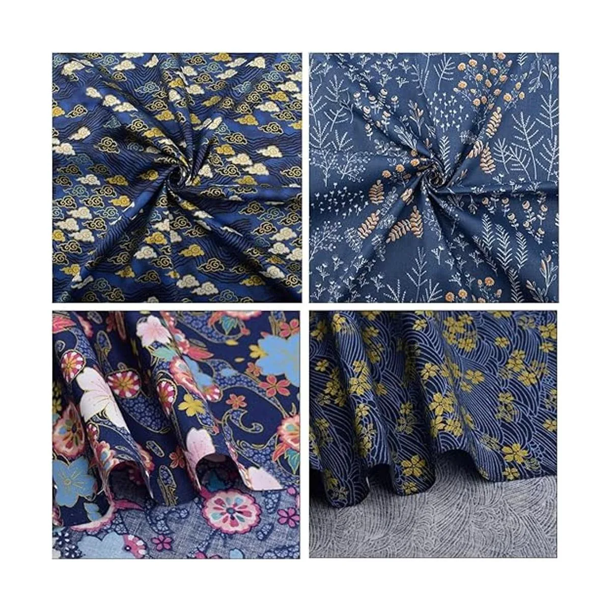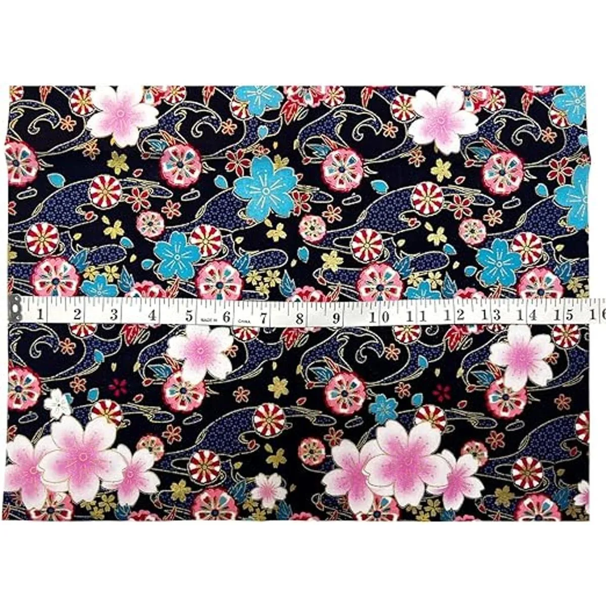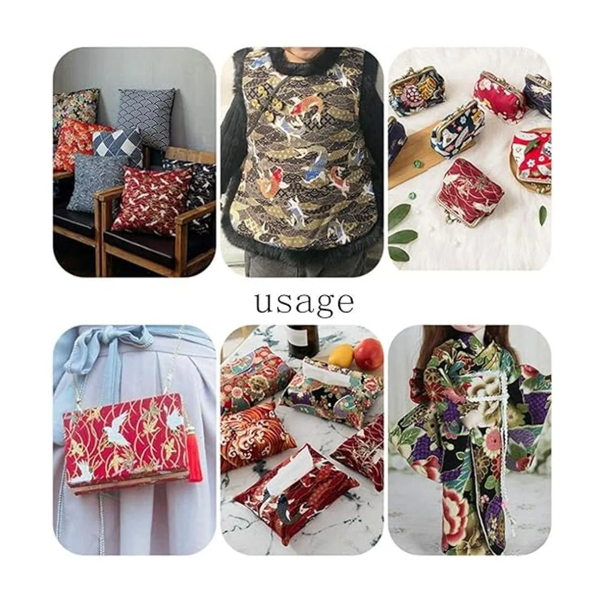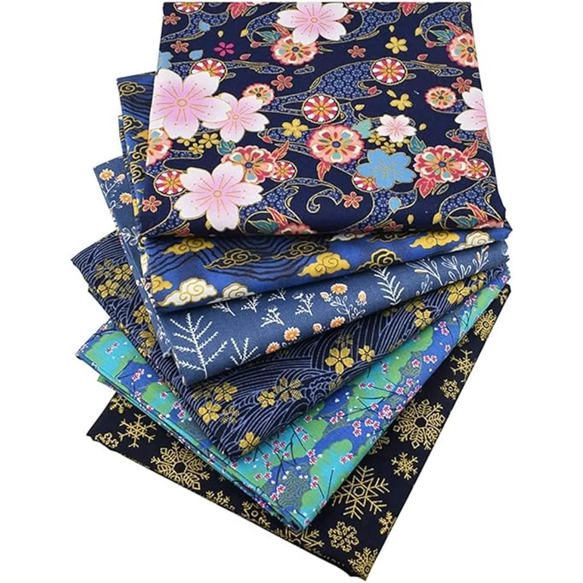 Queenbox 6 piezas de tela impresa japonesa, 15.7 x 19.6 pulgadas, tela de costura de algodón con ondas impresas tradicionales Sakura para kimono Cheongsam bolsa DIY acolchado