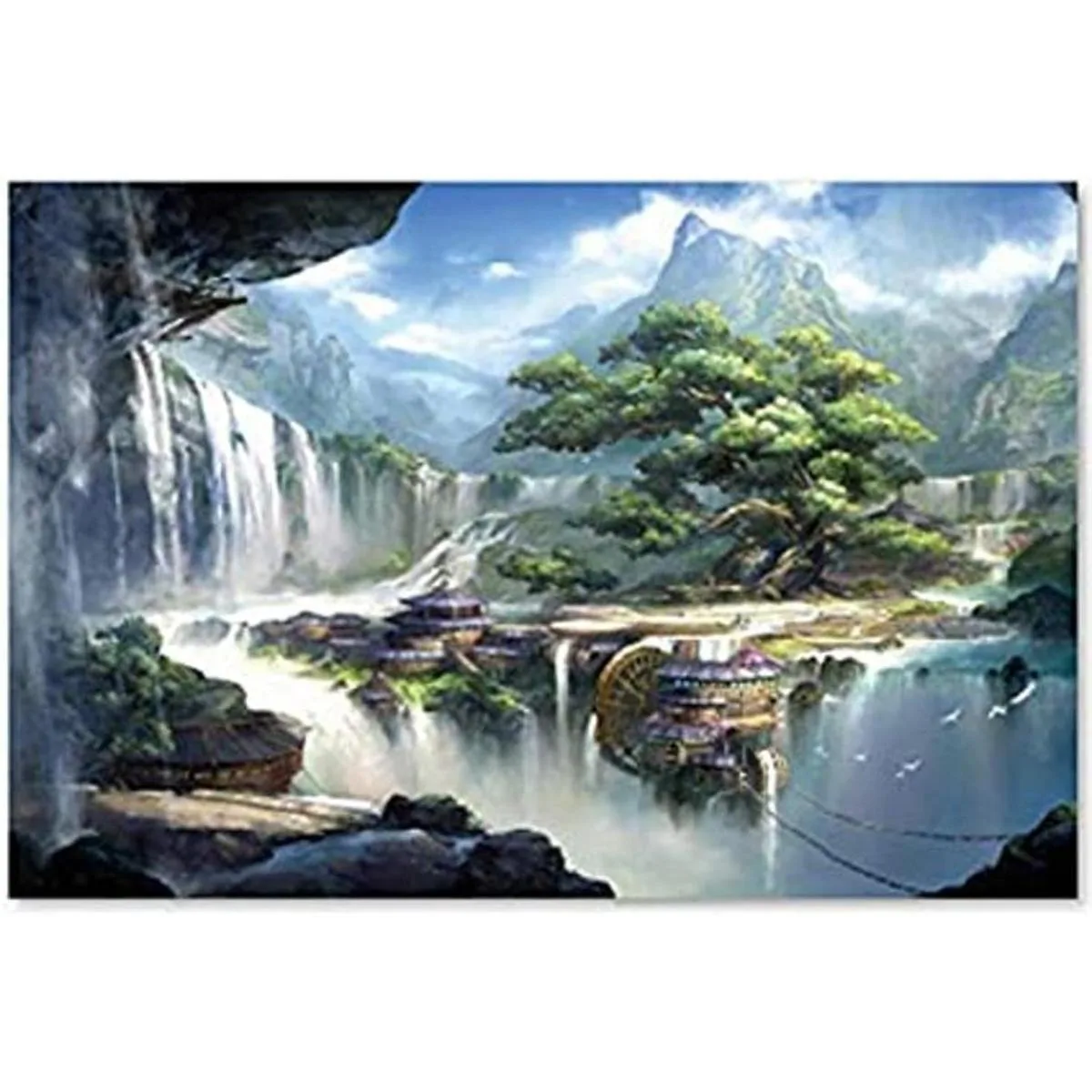 Queenie 1000 piezas arte abstracto cascada aislada isla maravilla rompecabezas ciudad de adultos juegos máquina juguete rompecabezas madera rompecabezas