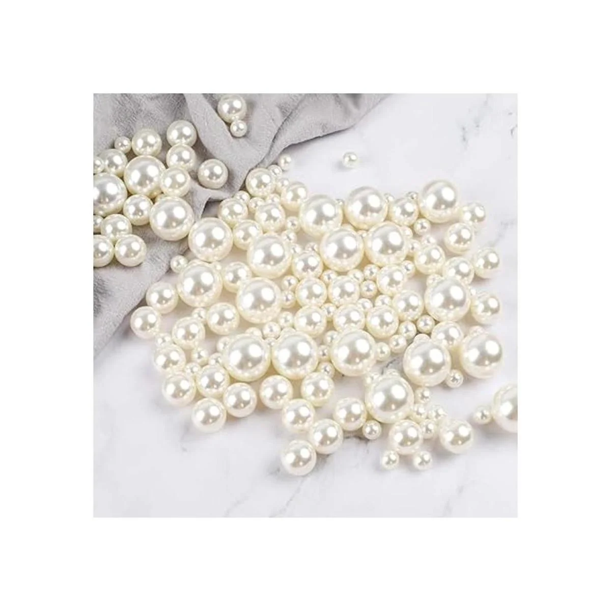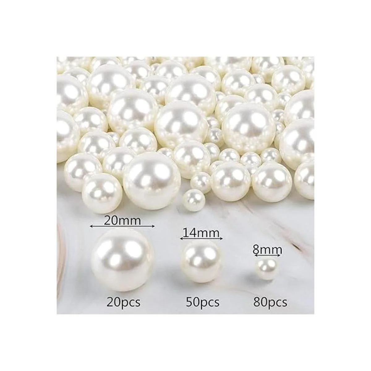 Quefe 150 perlas para manualidades, sin agujeros, relleno de jarrón, cuentas artificiales de plástico marfil, perlas para relleno de jarrón, dispersión de mesa, boda, fiesta de cumpleaños, decoración del hogar 0.315 in, 0.551 in, 0.787 in