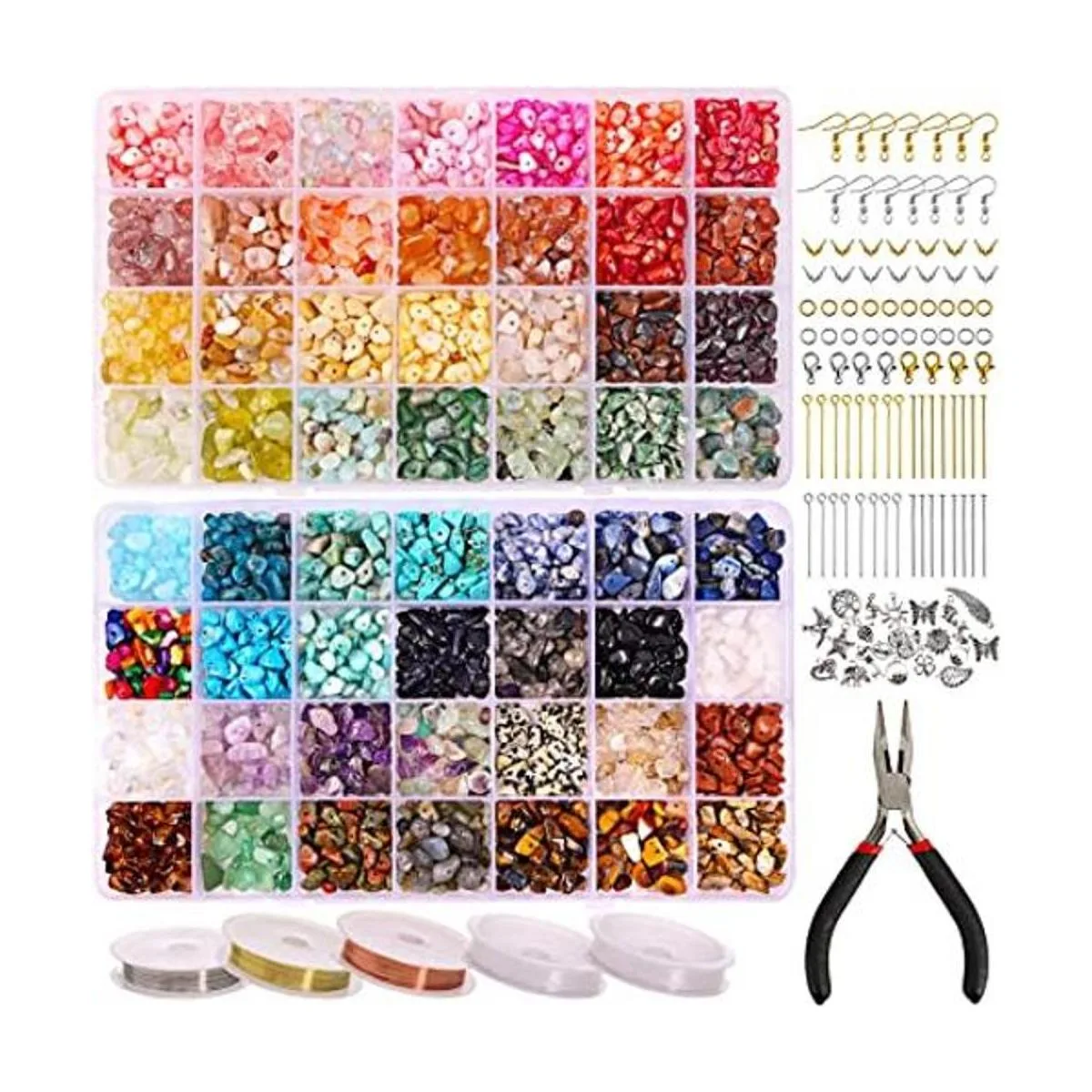 Quefe 1800 cuentas de cristal de 56 colores, kit de fabricación de anillos, cuentas de piedras preciosas naturales irregulares con suministros de fabricación de joyas para manualidades, pulseras, collares, aretes, regalos de manualidades