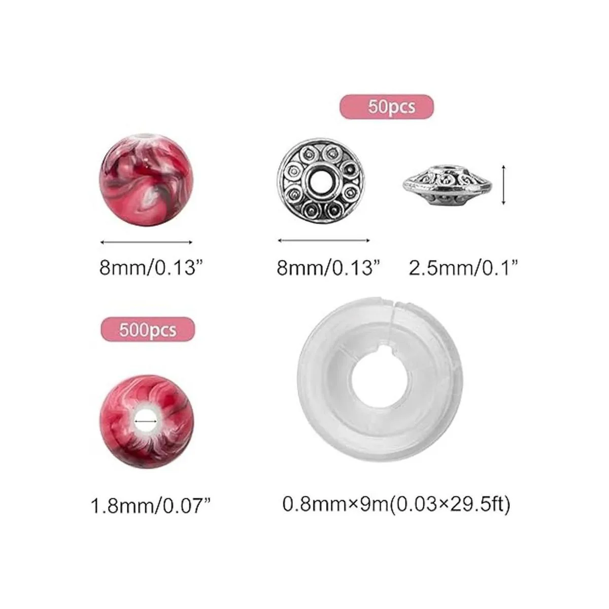 Quefe 500 cuentas artesanales para hacer joyas, para hacer pulseras, cuentas acrílicas espaciales en patrones de tinta con 50 cuentas espaciadoras y cuerda de cristal 0.315 in