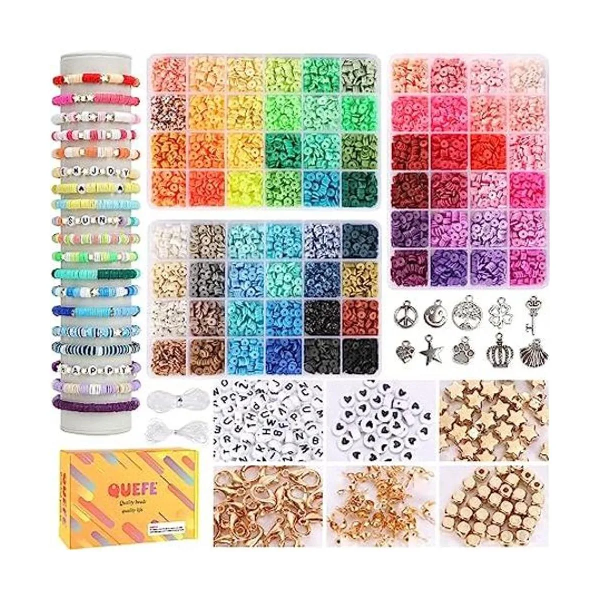 QUEFE 9000 cuentas de arcilla de 72 colores para kit de fabricación de pulseras, kit de fabricación de pulseras para niñas de 8 a 12 años, cuentas de polímero Heishi, cuentas de letras para hacer joyas, para regalos, manualidades, preparación