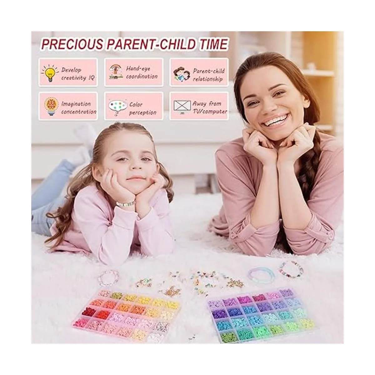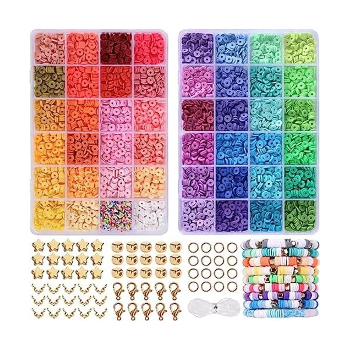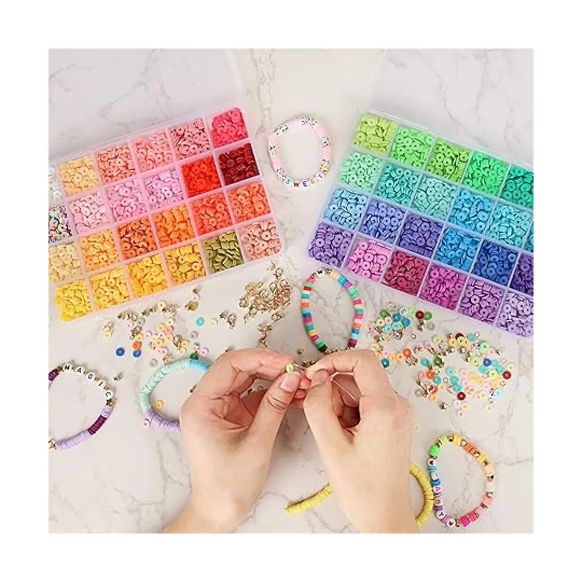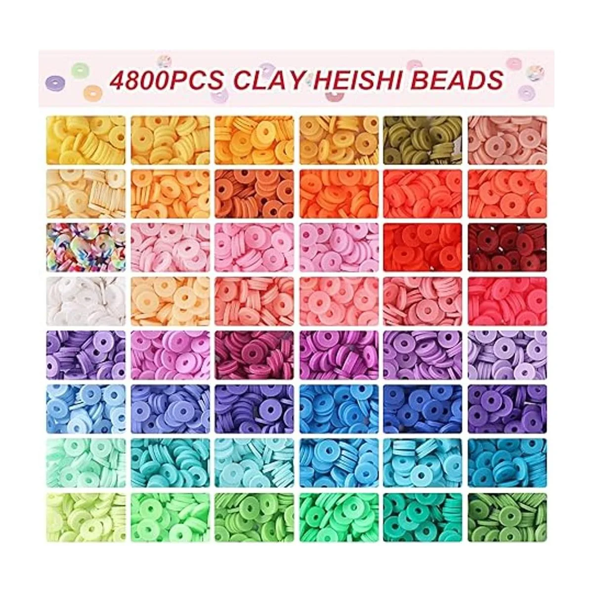 QUEFE Kit de 4800 cuentas de arcilla para hacer pulseras, 48 colores, cuentas de arcilla polimérica redondas planas, espaciadoras, cuentas Heishi para kit de fabricación de joyas, para niñas de 8 a 12 años, preparación, paquete de regalo