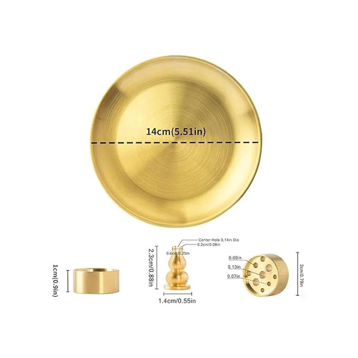 El paquete incluye: 1 bandeja de metal para cenizas con un diámetro de 5.5 in, 1 soporte de incienso en forma de calabaza de latón, el diámetro máximo del incienso que se puede insertar es de 0.1 in, 1 soporte de incienso de 9 agujeros, el tamaño específico como se muestra en la imagen