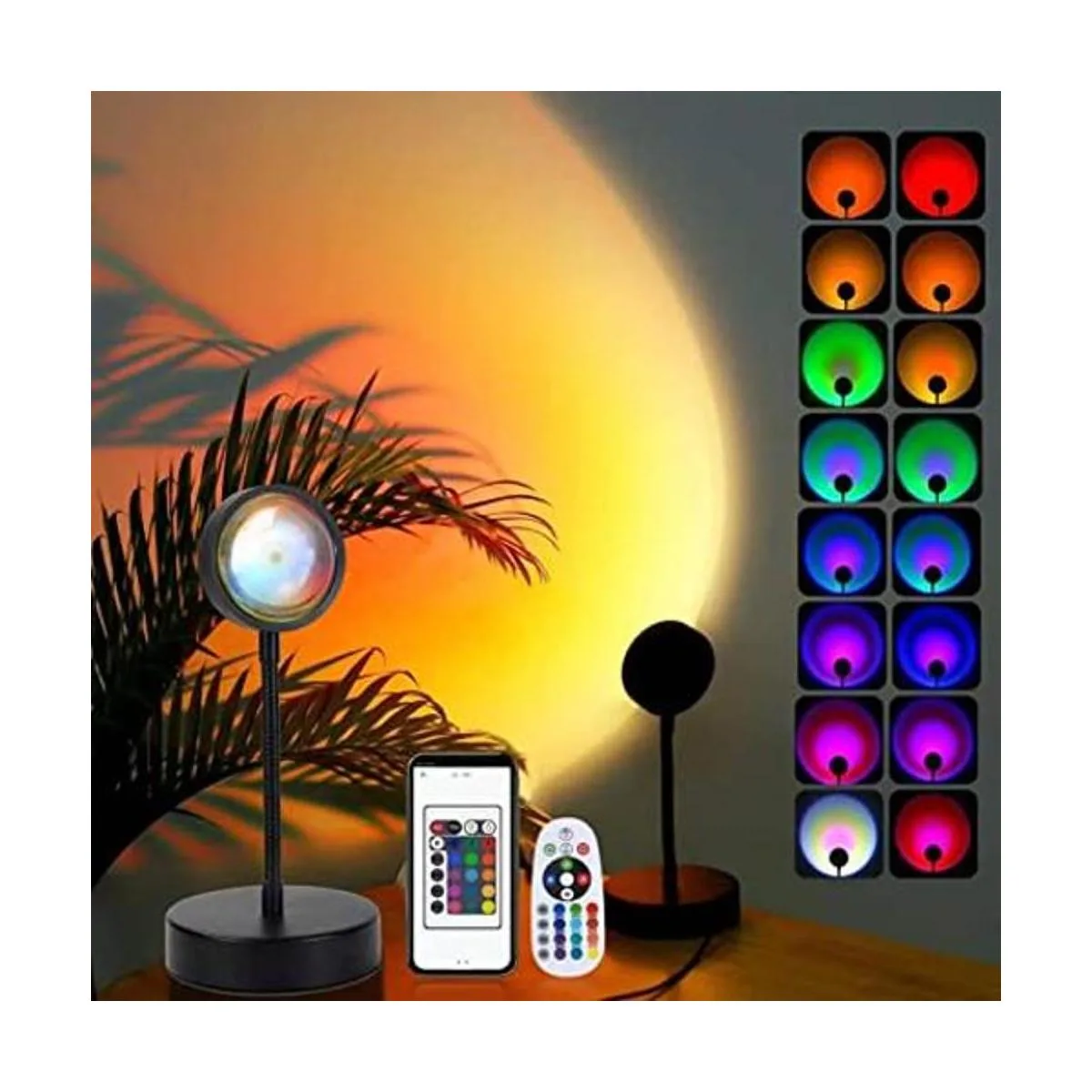 Control remoto y aplicación: es una lámpara de puesta de sol con control remoto, también es una aplicación de lámpara de puesta de sol controlada.